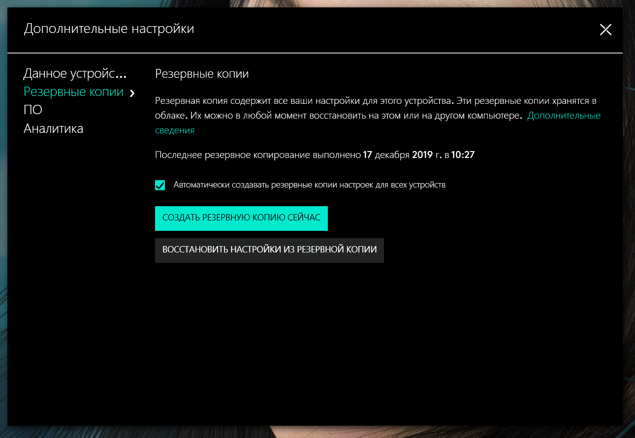 Здесь очень мало опций – включение уведомлений о низком заряде батареи, автоматического создания резервных копий настроек, проверка обновлений ПО и связь со службой поддержки.