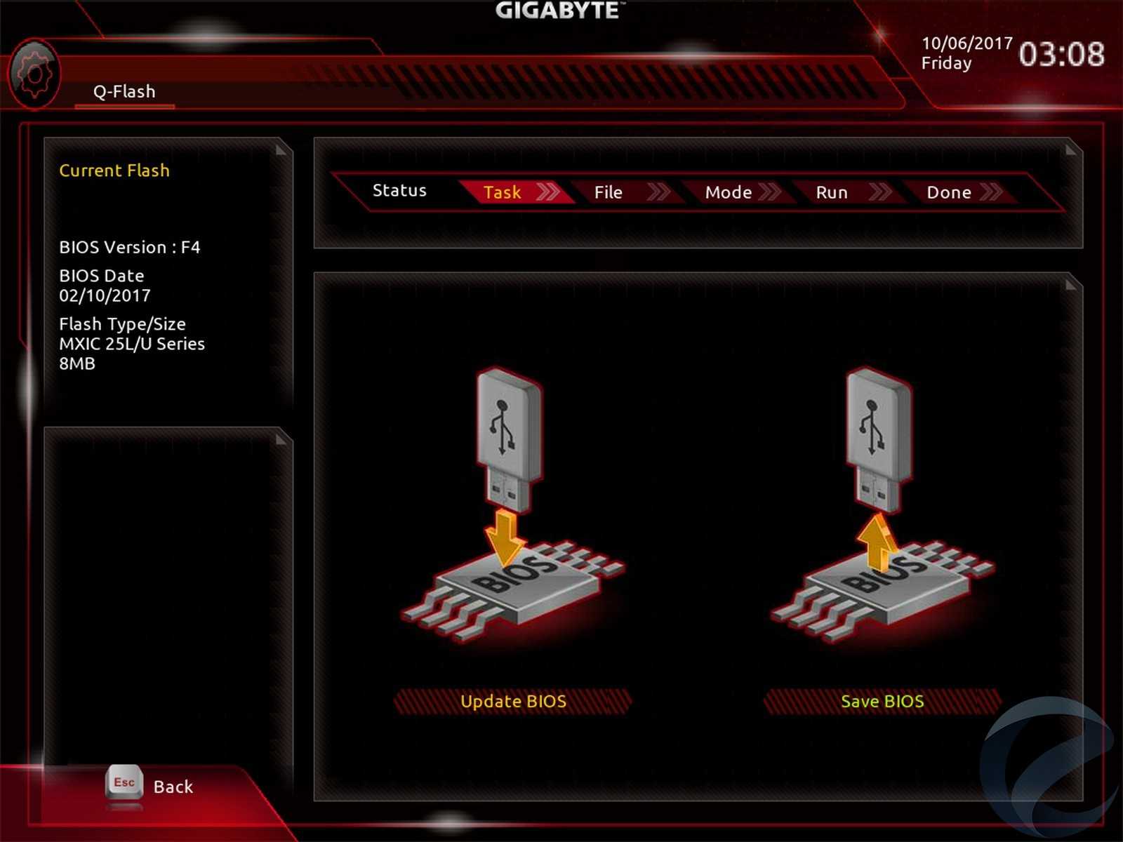В BIOS материнской платы AORUS GA-Z270X-Gaming K5 есть еще пара полезных опций, которые могут пригодиться пользователю. Первая — это вкладка «Q-Flash», где можно обновить прошивку BIOS, а также сохранить предыдущую.