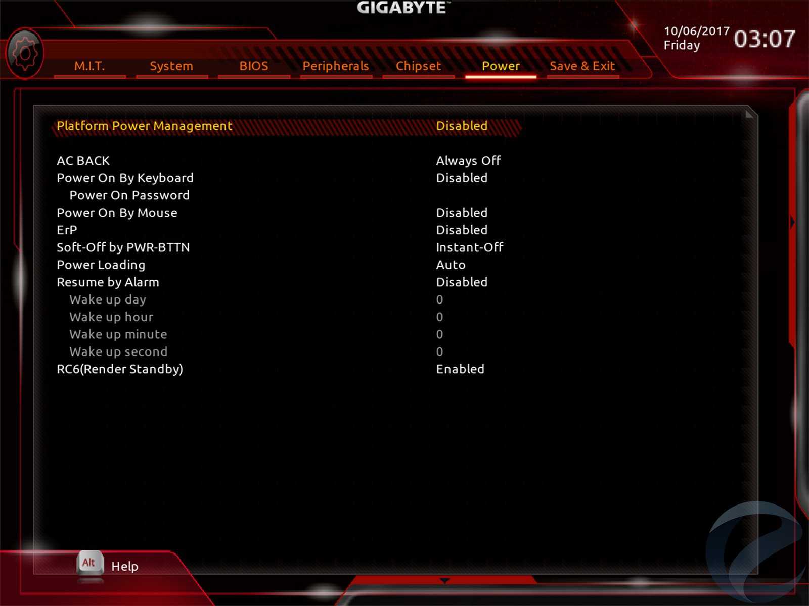 Вкладка «Power» содержит настройки питания, энергосбережения и автоматического включения по заданным условиям.