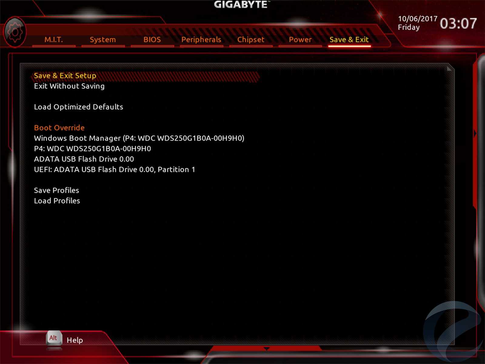 Save and Exit – на последней вкладке вы можете сохранить/загрузить профили с настройками, а также оценить установленный приоритет для загрузочных устройств.