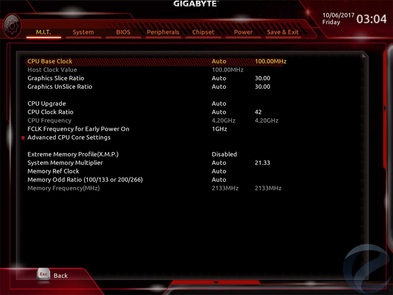 M.I.T. – первая вкладка является наиболее содержательнойи открывает доступ к широкому спектру настроек связанных с разгоном.