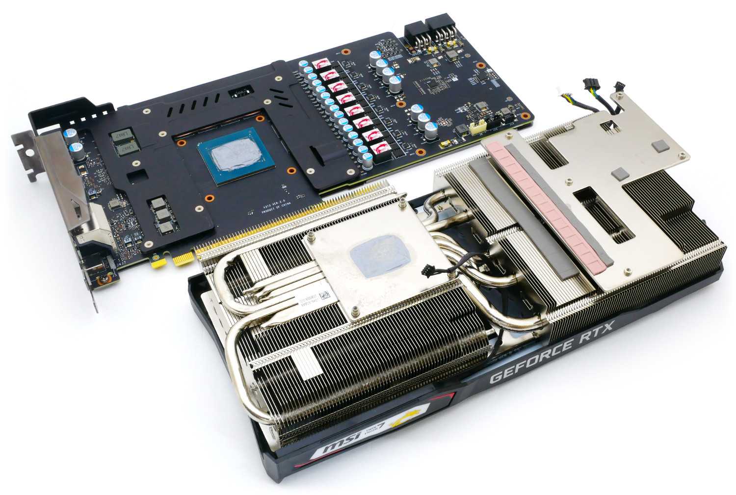 Высота тела радиатора впечатляет — 28 мм, что делает кулер видеокарты MSI GeForce RTX 2070 Gaming Z 8G одним из самых крупных.