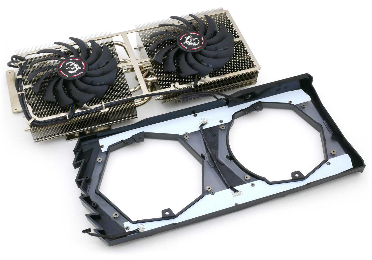 Теперь вентиляторы крепятся напрямую на радиаторе, а декоративный кожух обрел свою независимость, приютив две настраиваемые RGB зоны (полосы по периметру кулера инадписьTwin Frozr 7).