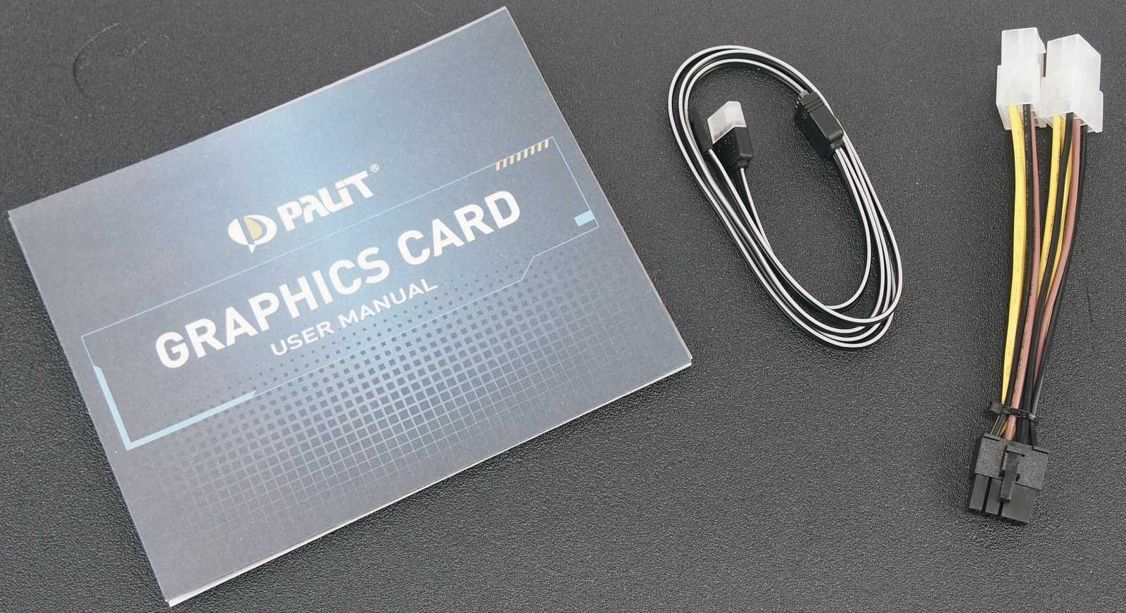 Вместе с видеокартой RTX 3070 JetStream OC поставляется руководство пользователя, кабель для синхронизации ARGB подсветки, а также переходник питания 2*6-пин > 8-пин.