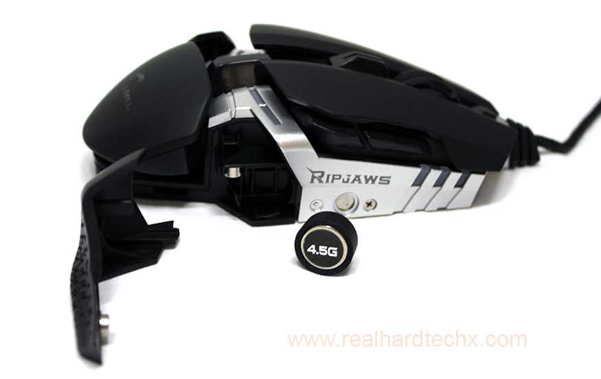 Para potenciar aún más la capacidad de personalización por parte del gamer, G.Skill ofrece la posibilidad de ajustar el peso del ratón en 4.5 + 4.5 g mediante dos pesas que se colocan una a cada lado del ratón.