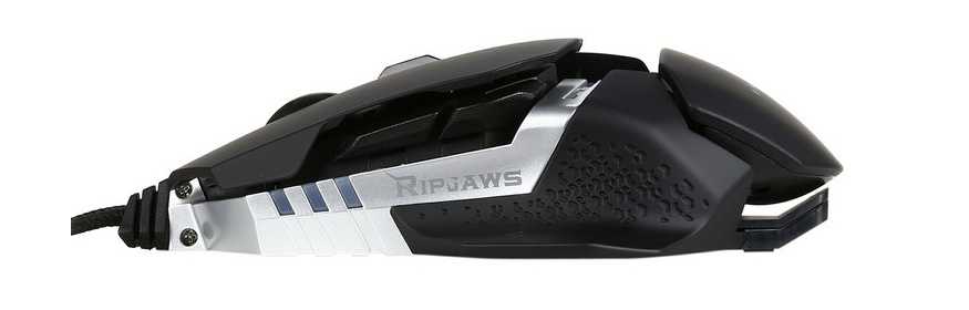 Se trata de un ratón de diseño industrial de gran belleza. Luce un soberbio negro mate conjugado con un elegante plateado. En la zona de la palma de la mano destaca el logo de la marca mientras que en los laterales se recoge la serie Ripjaws.