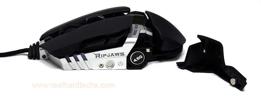 G.Skill ha querido que este sea un ratón para ambidientros real. Para ello se incluyen un par de asideros que se sustituyen de manera sencilla e intuitiva. Sólamente hemos de tirar hacia afuera los que están colocados mediante imanes y colocar los otros empujando hacia adentro.