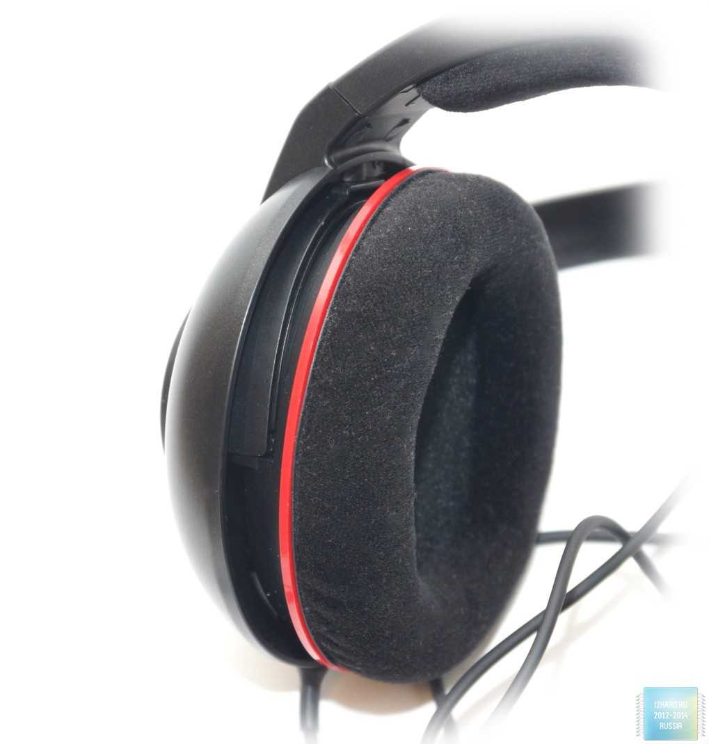Чашки овальной формы, очень крупные: 95 × 110 × 50 мм. Амбушюры несъемные, выполнены из велюра. Внутренний диаметр 45 × 65 мм позволит с комфортом разместиться на любом ухе. Никакого давления на уши, вся нагрузка придется на ваш череп.