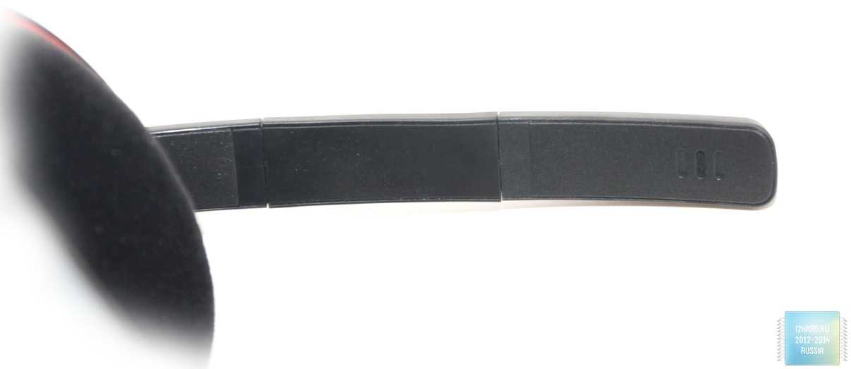 А давление довольно приличное, на фото хорошо заметно под каким углом чашки крепятся к дужке. Никакого шарнира в этом месте нет, вся регулировка за счет стальной подпружиненной вставки, при помощи которой регулируется размер оголовья. А изменяться длина дужки может по 50 мм с каждой стороны, фиксация в любом положении четкая за счет трещотки.