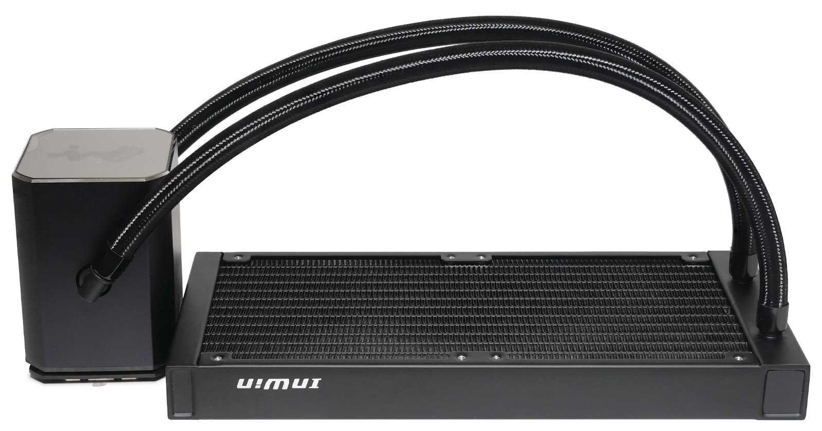 Контур системы охлаждения InWin SR24 Pro собран по классической схеме с предзаполненным специальной жидкостью контуром, в котором насос установлен в корпусе водоблока, а радиатор типоразмера 240 мм вынесен на гибких шлангах длиной 40 см (с учетом фитингов). Отдельные детали качественно окрашены в матовый чёрный, а шланги защищены нейлоновой оплёткой в цвет.
