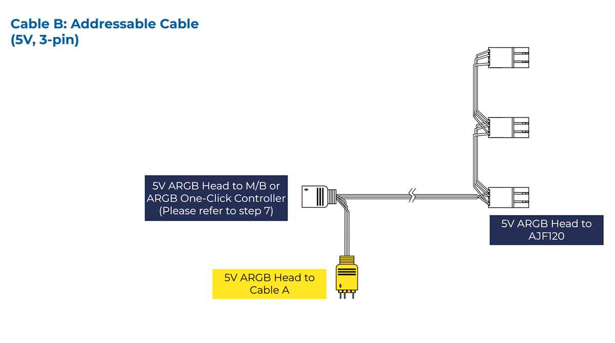 Разъёмы на соединительных проводах имеют необходимые ответвления для гирляндного подключения по цепочке. Штекер для подключения к контроллерам подсветки типовой трёхконтактный, ASUS AURA-совместимый. Заявлена совместимость с экосистемами основных производителей материнских плат: ASRock POLYCHROME, ASUS AURA, BIOSTAR RGB SYNC, GIGABYTE RGB FUSION 2.0 и MSI MYSTIC LIGHT.