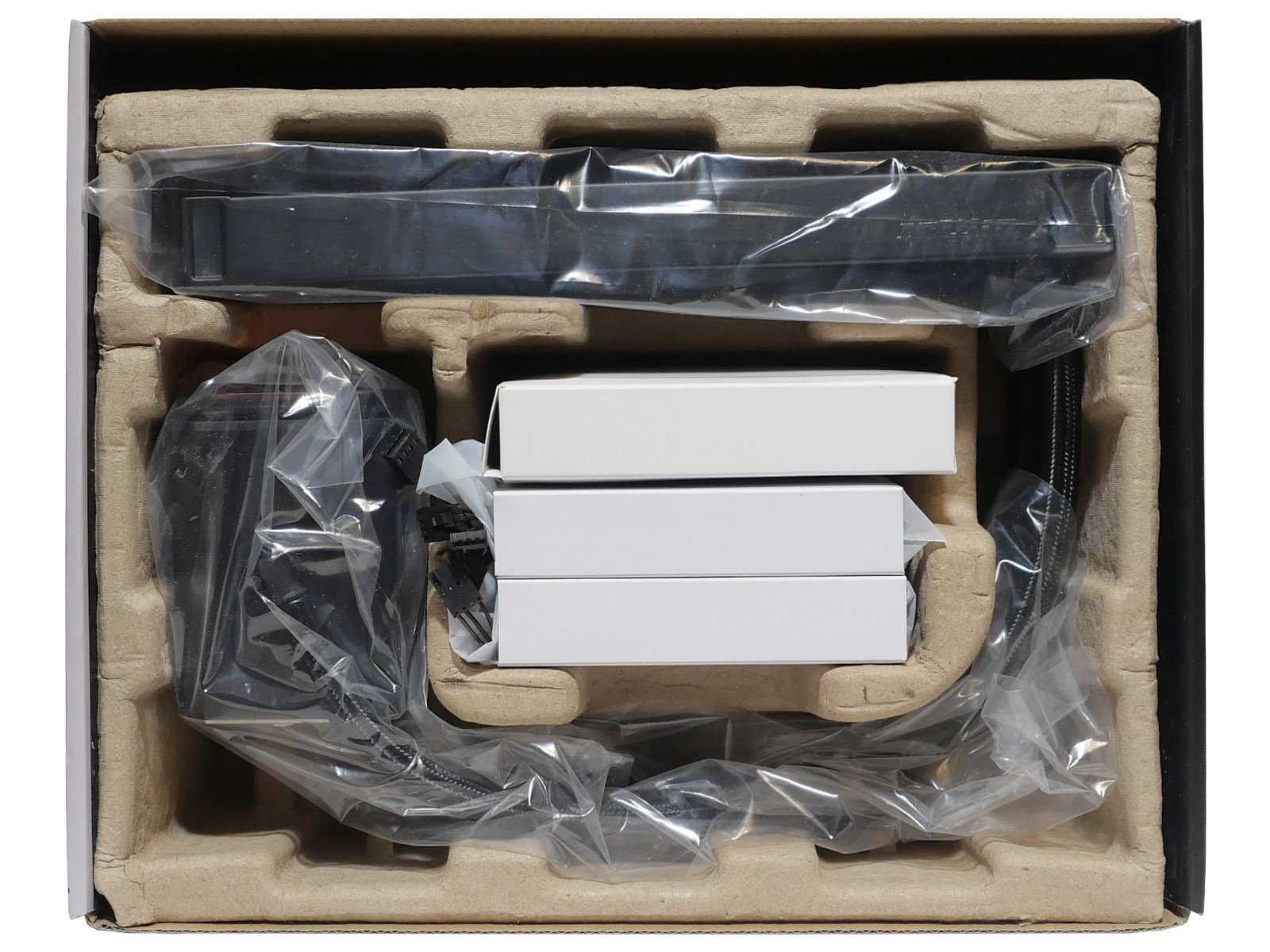 Внутри коробки всё сложено аккуратно с привычной для AIO-СЖО укладкой компонентов в формованное ложе из переработанного плотного картона. В таком варианте устройства хорошо выдерживают транспортировку экспедиторскими компаниями и службами доставки даже на дальние расстояния.