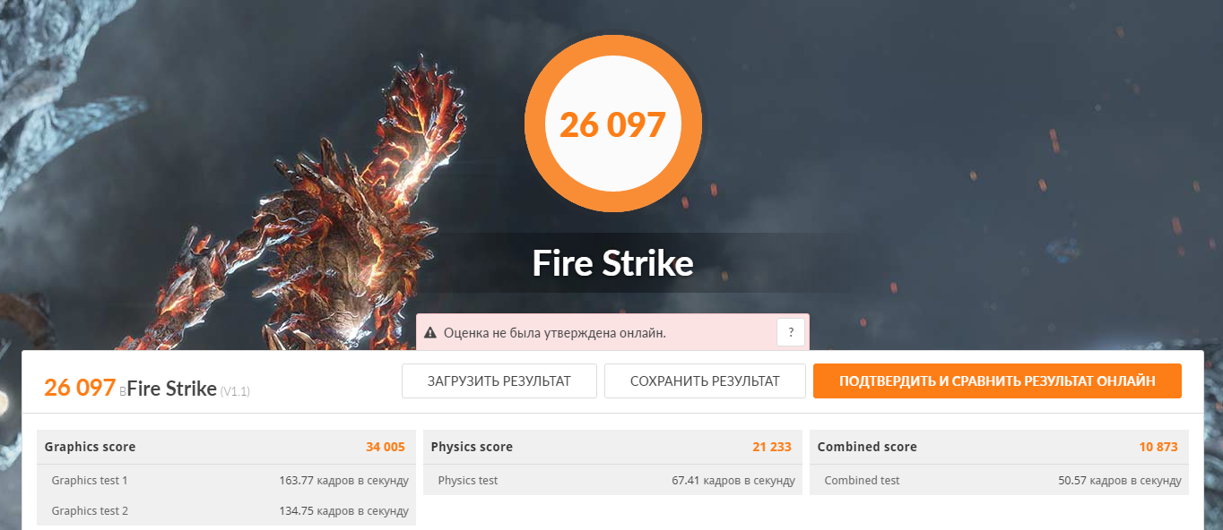 Эталонная производительность INNO3D GeForce RTX 3070 iCHILL X3 в бенчмарке 3DMark Fire Strike.