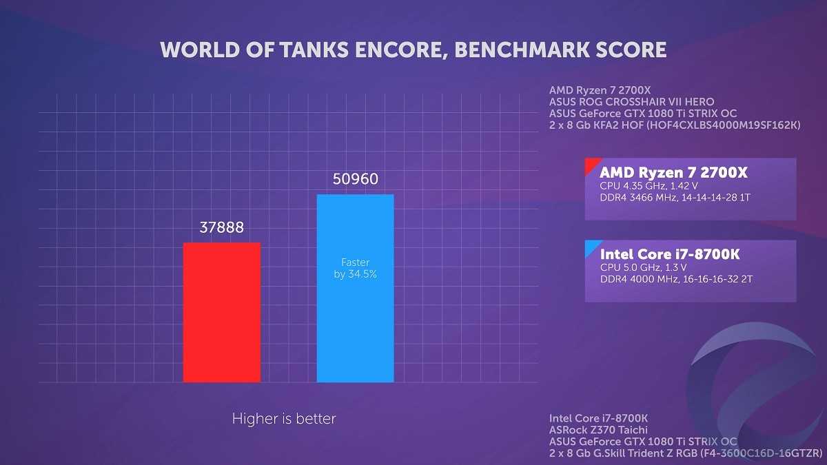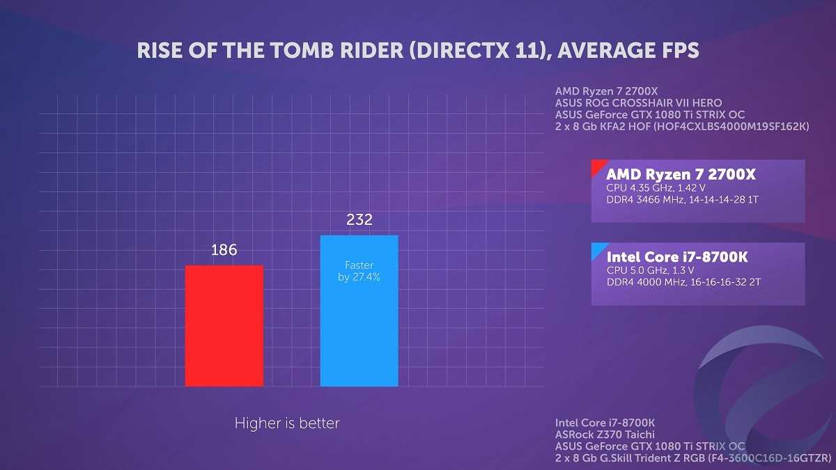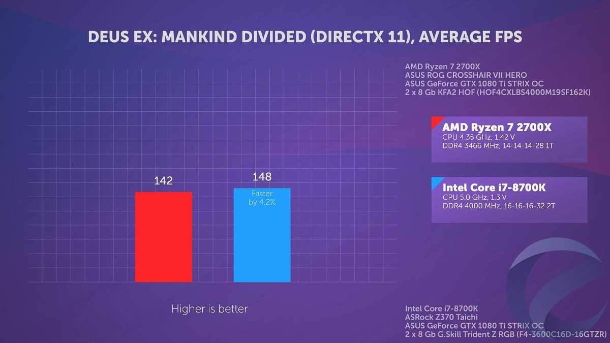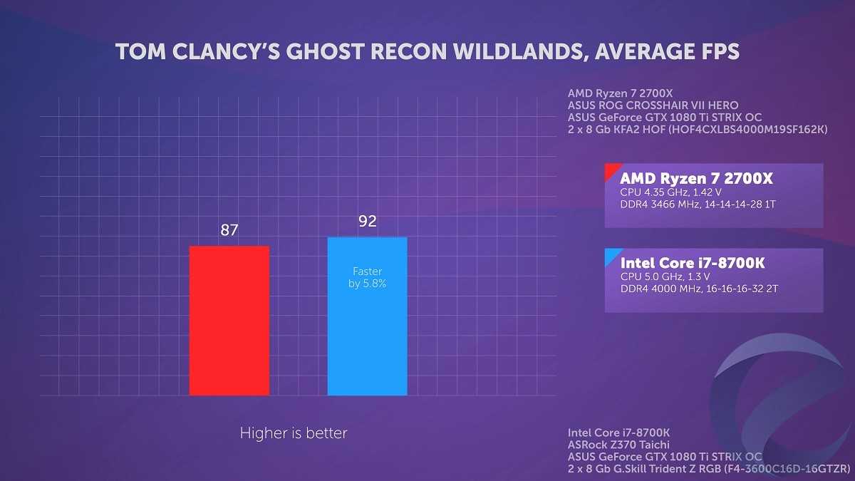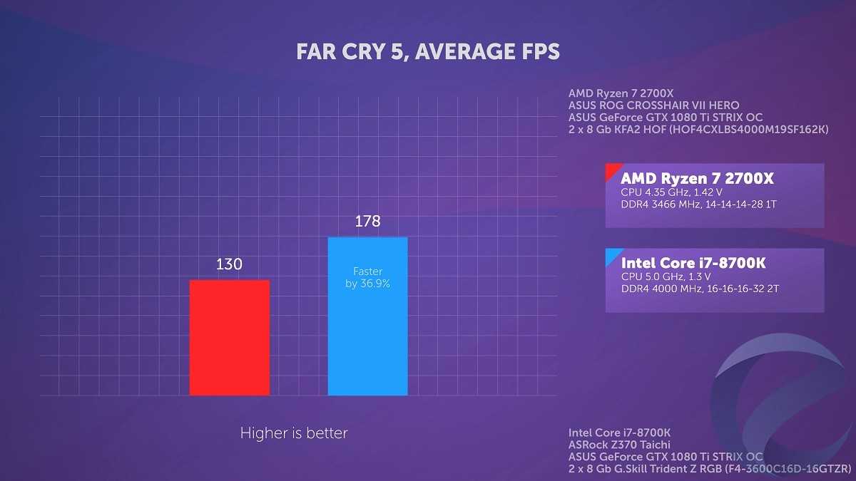 А вот в играх с оптимизацией под многопоток и с упором в графическую составляющую ситуация изменяется. Разница в производительности менее существенна, но i7-8700K всё остается лучшим игровым решением.