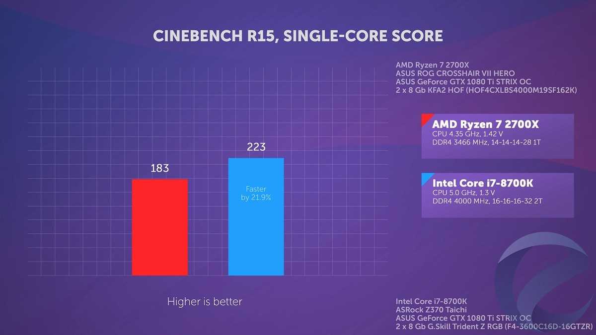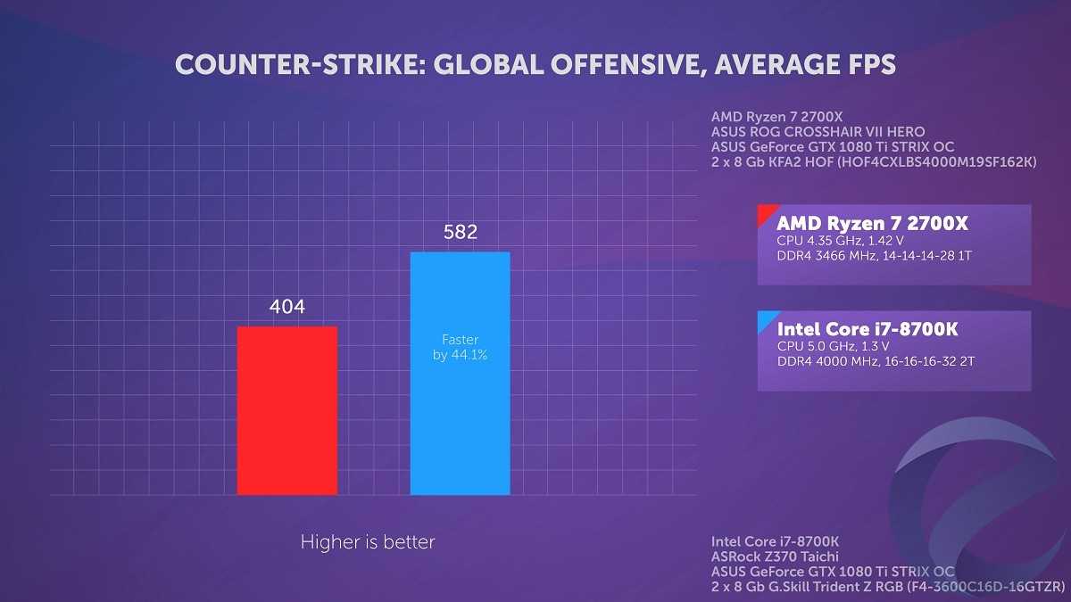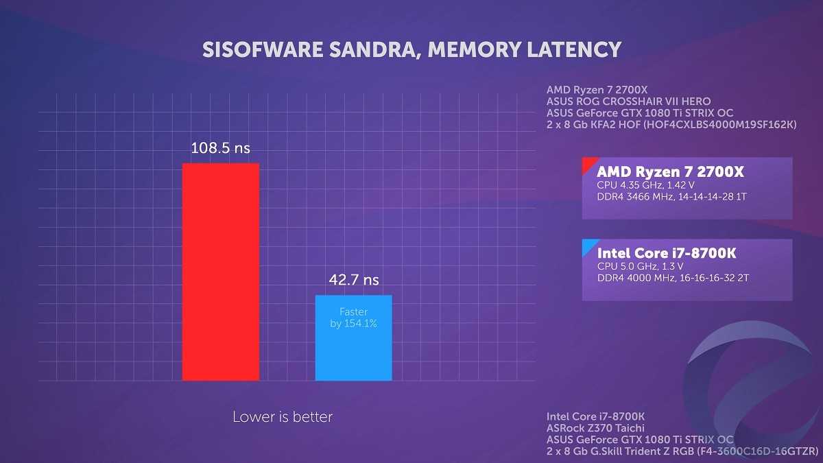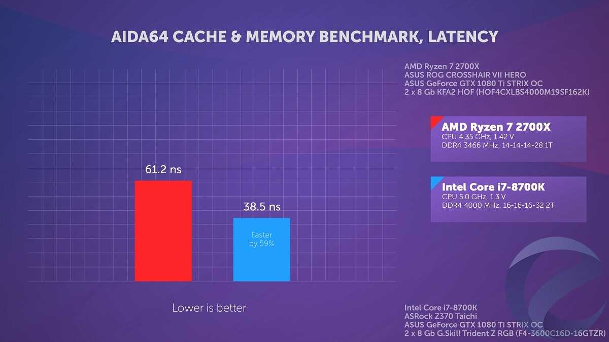 Модульная структура Ryzen идет не на руку задержкам,разница достигает практически 60%.