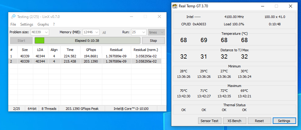 Заключительный тест по традиции посвящён нагреву. Спустя 10 минут работы LinX, тестируемый процессор прогрелся до 72 градусов по самому горячему ядру. Результаты хорошие, они говорят о том, что покупать топовый кулер для такого процессора не придётся.