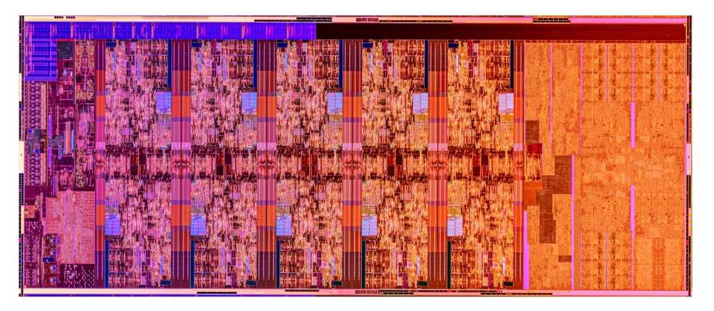 Полупроводниковый кристалл Core i9-10850k имеет площадь 198 квадратных миллиметров. Компоновка включает в себя 10 физических ядер с кольцевой шиной, а также общий кэш L3 объемом 20 Мб.