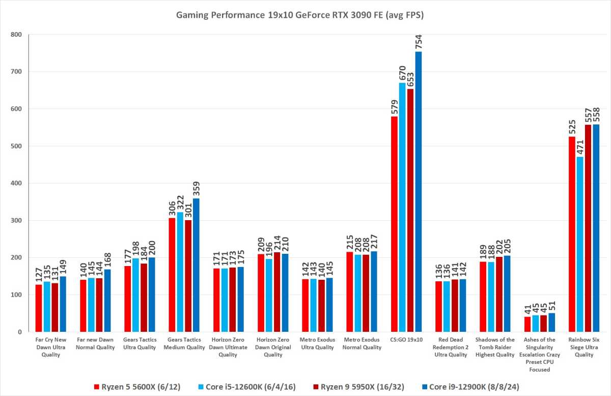 | Intel Core i9-12900K | Intel Core i9-11900K | Intel Core i5-12600K | Intel Core i5-11600K | |