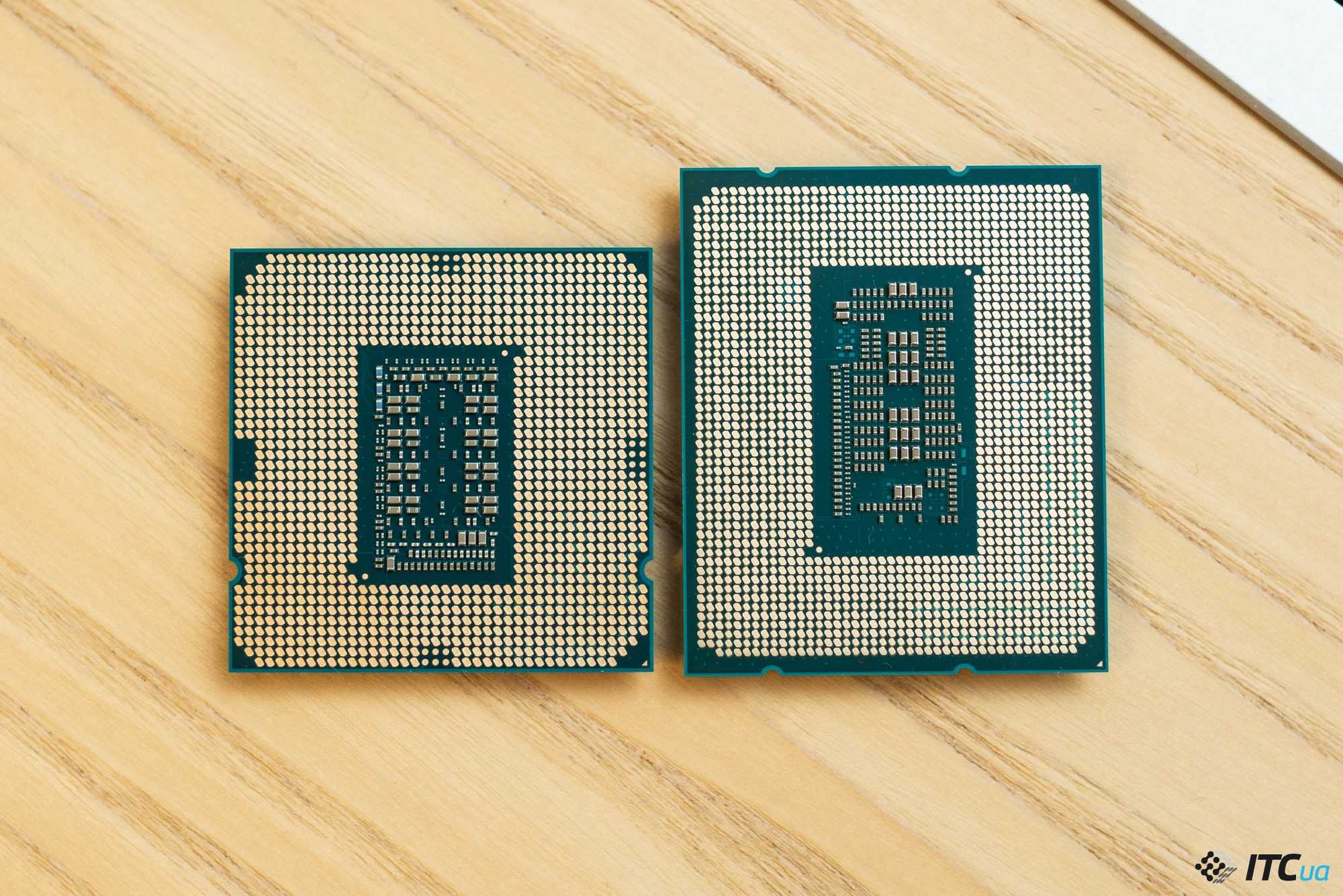 Новые процессоры соответствуют форм-фактору LGA1700. Физические габариты процессоров заметно возросли. В данном случае Intel отказалась от привычной квадратной формы CPU. Чипы Alder Lake-S имеют вытянутую прямоугольную форму с набором ключей для корректной установки процессора в разъеме. Учитывая отличие в габаритах, очевидна несовместимость с платформами предыдущего поколения.