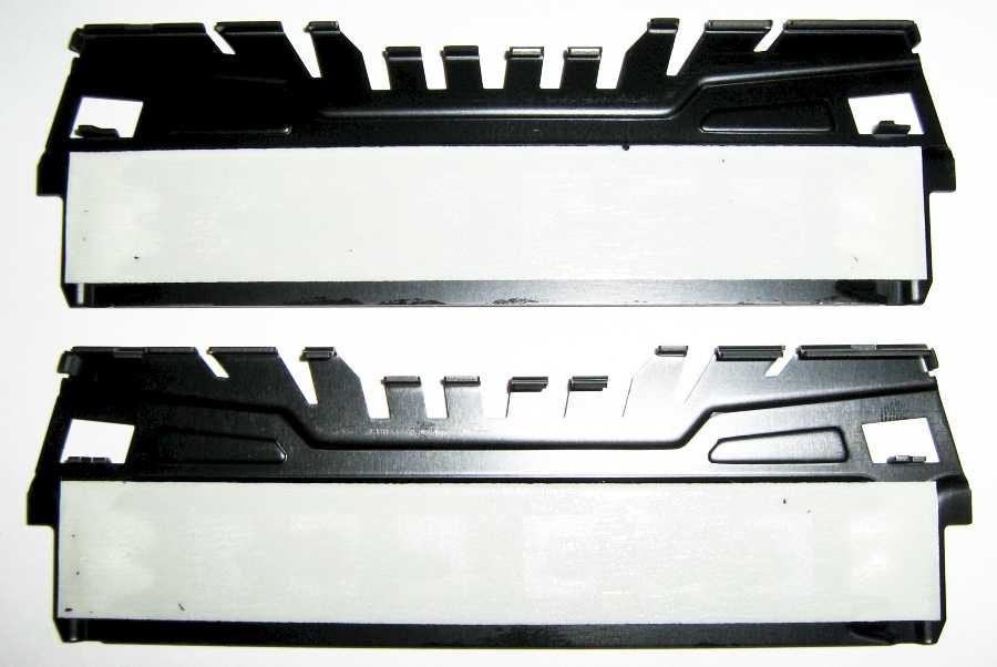 Радиаторы системы охлаждения контактируют с микросхемами оперативной памяти через термопрокладки. Снимаются радиаторы несложно – достаточно нагреть модуль памяти феном или печкой-обогревателем.