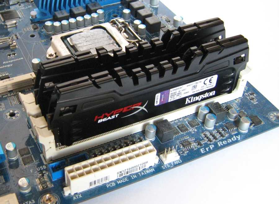 Установленные на материнскую плату модули памяти имеют следующий вид.
