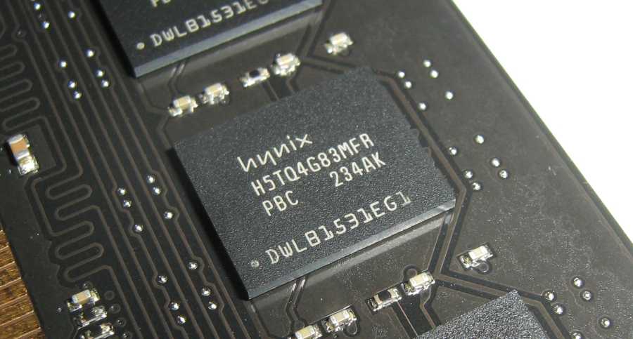 Модули памяти без радиаторов собственной персоной. Под радиаторами скрываются микросхемы памяти от компании Hynix.
