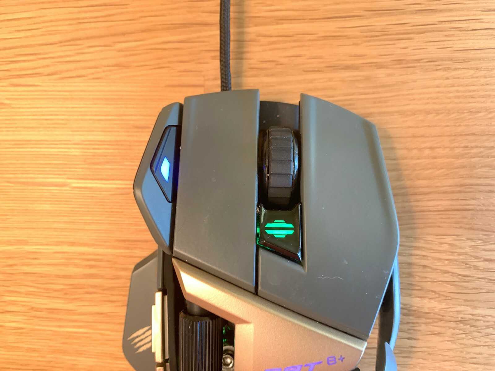 R.A.T.7 имеет 7 физических кнопок — традиционно для всех мышек левая иправая , кнопки длясмены DPI ивыбора режима ,две навигационные кнопки и маленькаякрасная кнопка с значком прицела, чем она собственно и является в шутерах. Кроме физических кнопок имеется вращающееся колесо, на которое можно назначить действия при вращении в обе стороны. Данной «крутилкой» в играх очень удобно менять оружие.