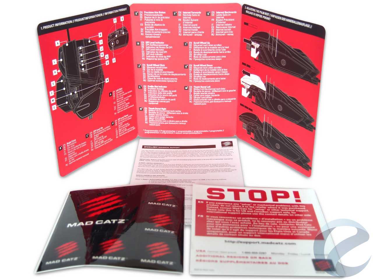 В комплекте с RAT 6 только несколько бумаг: краткая инструкция, гарантийный талон (к слову, гарантия на мышь составляет 2 года) и набор фирменных наклеек разного размера.