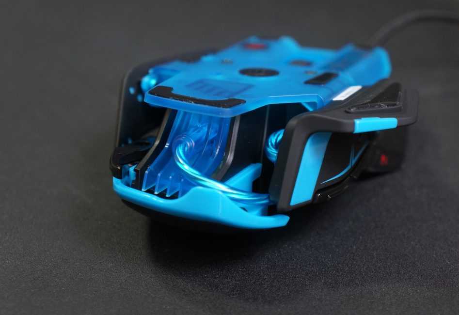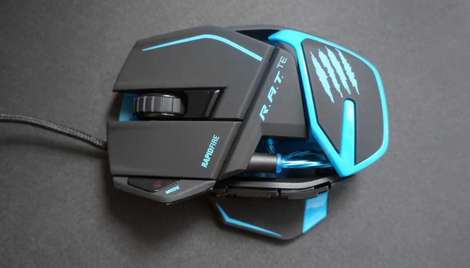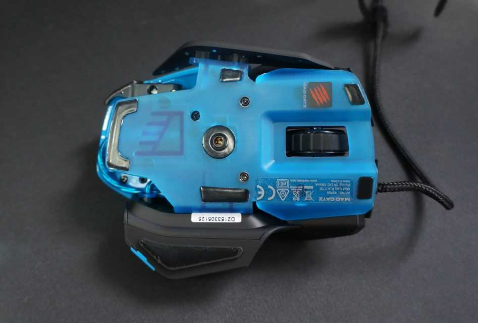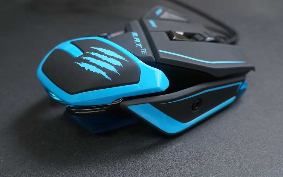 Три важных отличия R.A.T. TE от ближайших мышек линейки. Во-первых, у R.A.T. TE нет колёсика горизонтальной прокрутки – среди всех мышей Mad Catz его нет у R.A.T.1, PRO S, R.A.T. 3 и M.M.O. TE. Во-вторых, основание выполнено из синего прозрачного и матового пластика вместо металла. В-третьих, встроен отличный лазерный сенсор Phillips с разрешением 8200 DPI, как у топовой PRO X в комплекте.