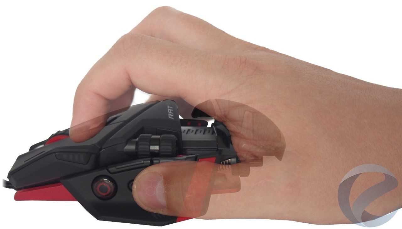Сдвиг панели назад, и, как следствие, удлинение корпуса помогут подобрать комфортное положение для владельцев длинных пальцев или крупных ладоней. Для любителей когтевого хвата сдвиг упора назад также будет к месту (зона срабатывания левой и правой кнопок начинается от самого основания), но, при этом, придется тянуться к кнопке снайперского огня. Субъективно четырех имеющихся позиций панели не хватает, промежуточные значения между ними были бы к месту. Не лишней была бы и возможность изменять наклон панели при сдвиге, чтобы улучшить хват крупной ладонью, что можно было бы реализовать небольшим изгибом направляющей рельсы к основанию, например, как это сделано на Cougar M700, но, к сожалению, MAD CATZ RAT 6 такой регулировкой не обладает.