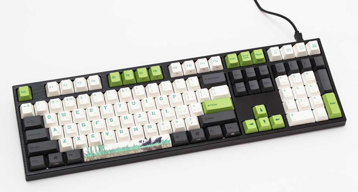 100% — full-size-клавиатура с цифровым блоком справа (иногда слева). Все масс‑маркет‑клавиатуры начинали с него, сейчас этот формат постепенно умирает в домашнем использовании. Обычно люди не набирают очень много цифр, а значит, им не нужен цифровой блок. Можно на нем сэкономить и сделать клавиатуру компактнее и дешевле. Кастомы этого формата встречаются чуть чаще цветущего папоротника, увы, он не пользуется популярностью у клавиатурных гиков.