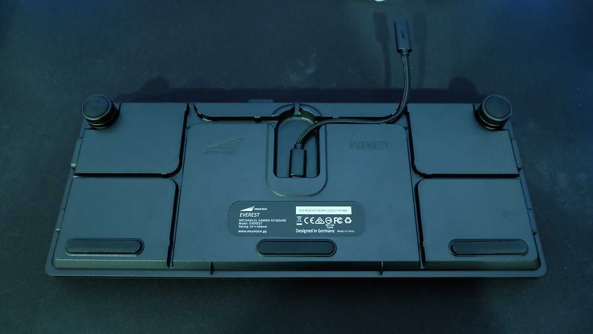 Underneath the keyboard’s body are a couple of cable routing channels and one detachable USB-C cord. The latter provides power to the Everest Max, the USB-A passthrough, and any other extras you connected.