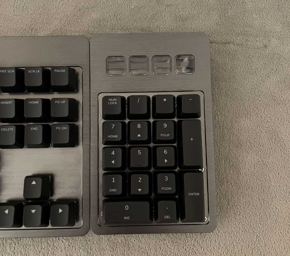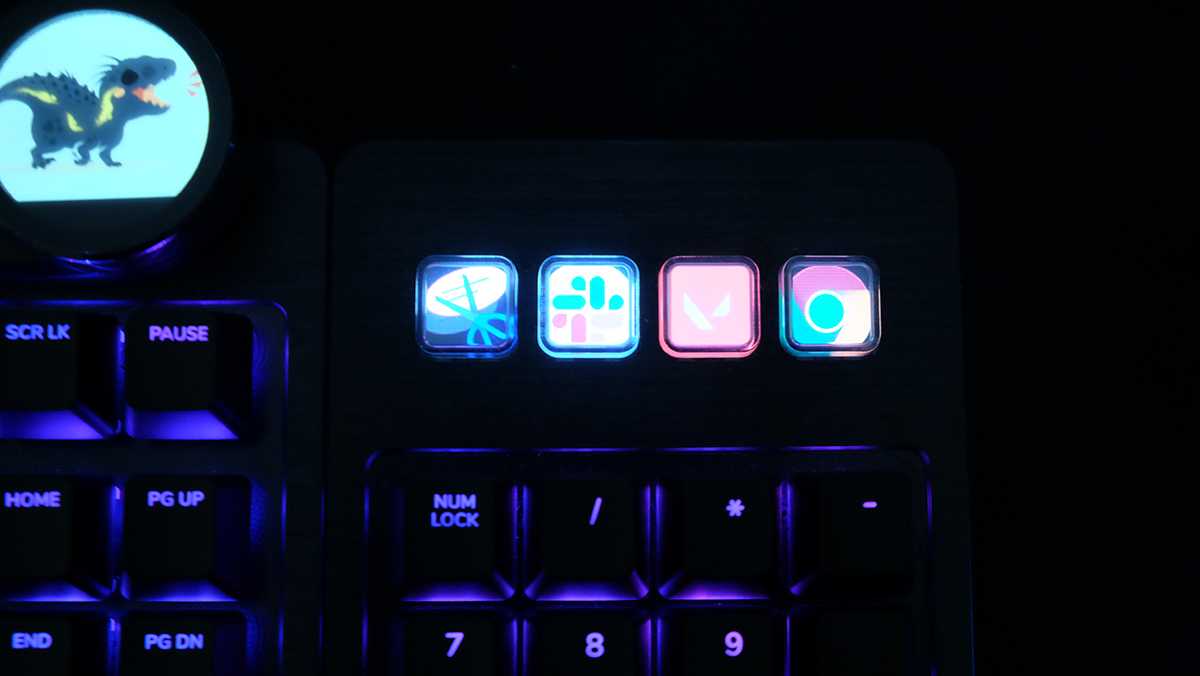 You’ll also see a quartet of buttons above the number pad. These become LED screens when you connect it to the keyboard. You can bind these to functions such as media playback controls, opening apps, or running macros.