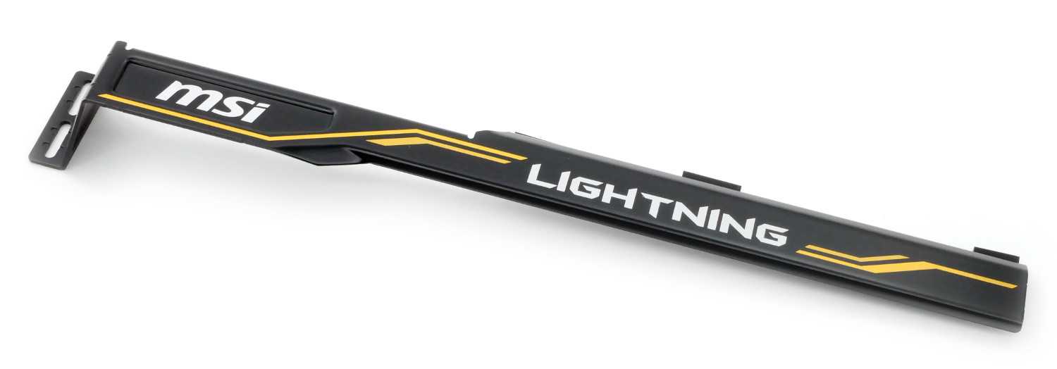Сложно представить себе представителя серии LIGHTNING без достаточного и эффективного воздушного охлаждения, поэтому модель MSI GeForce RTX 2080 Ti Lightning Z оснащена поистине крупным кулером, который на текущий момент является одним из самых огромных в своем стане среди GeForce RTX 2080 Ti. Для равномерного прилегания и удержания его веса крепление располагается не только в области графического процессора, но и в передней части конструкции.