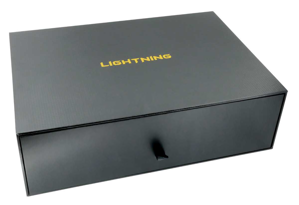 Новинка помещена в специальной форме и черной коробке с наименованием линейки LIGHTNING.