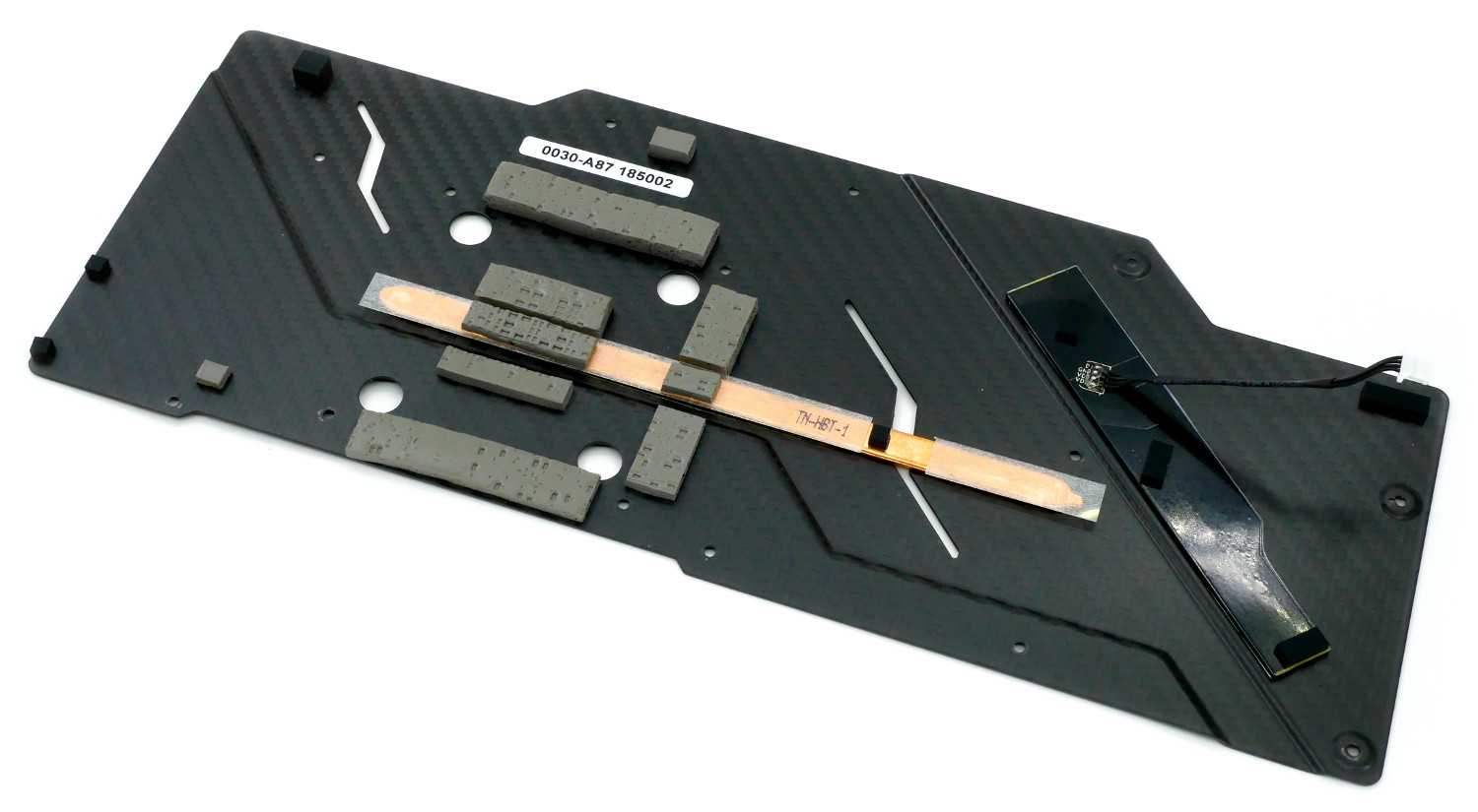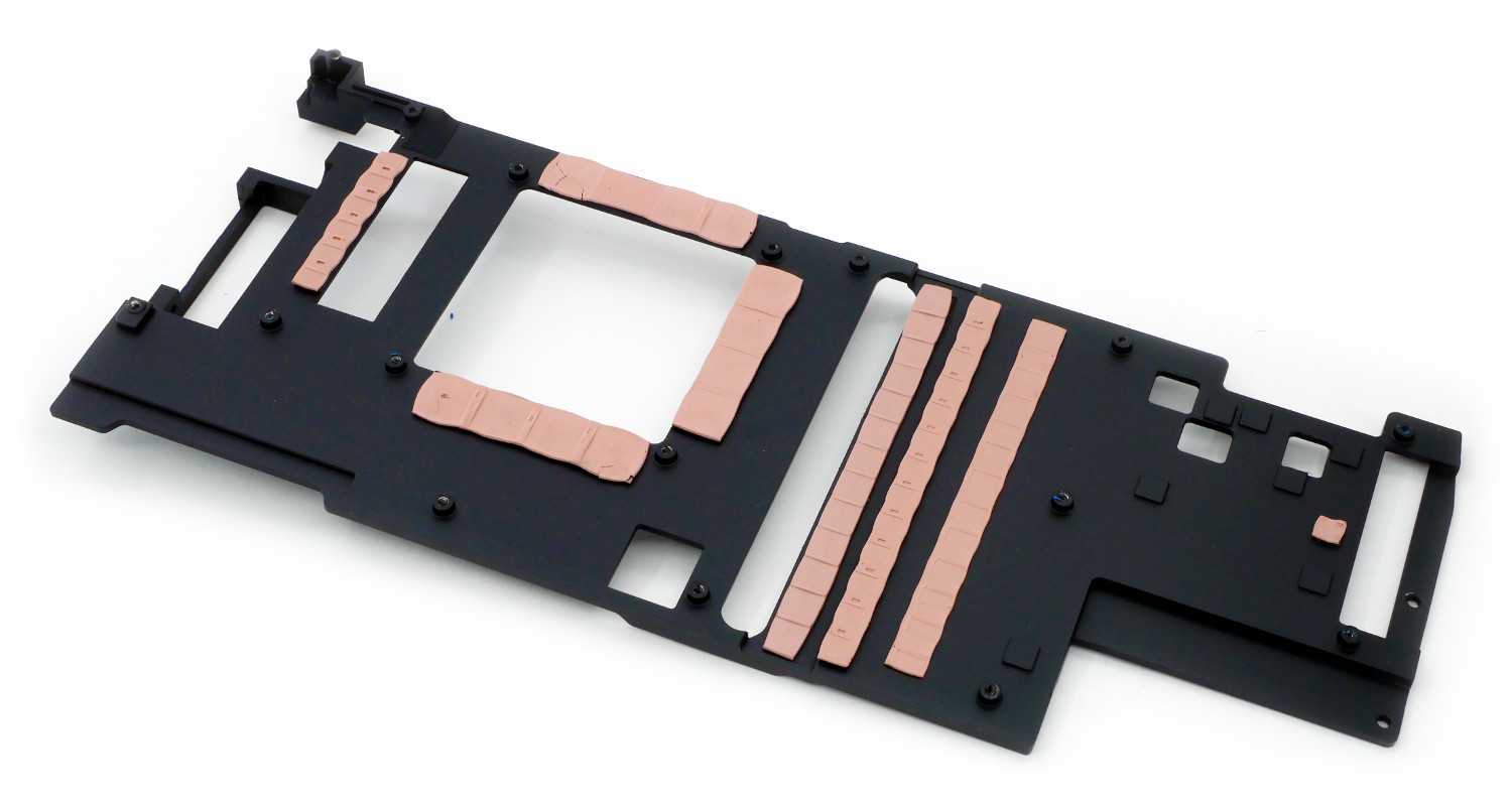 Карбоновый бэкплейт повторяет функциональные возможности своего предшественника. Разработчики используют плоскую тепловую трубку и термопрокладки для отвода тепла от графического процессора.