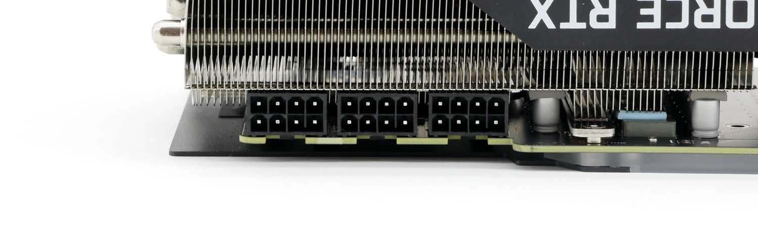Показатель TDP модели MSI GeForce RTX 3090 Gaming X Trio 24G составляет 380 Вт, поэтому инженеры наделили видеокарту сразу тремя коннекторами 8-pin для организации питания. Вместе со слотом PCI Express x16 мы имеем показатель мощности 525 Вт, поэтому для раскрытия всего потенциала MSI GeForce RTX 3090 Gaming X Trio 24G в будущем хотелось бы видеть BIOS с расширенным TDP.