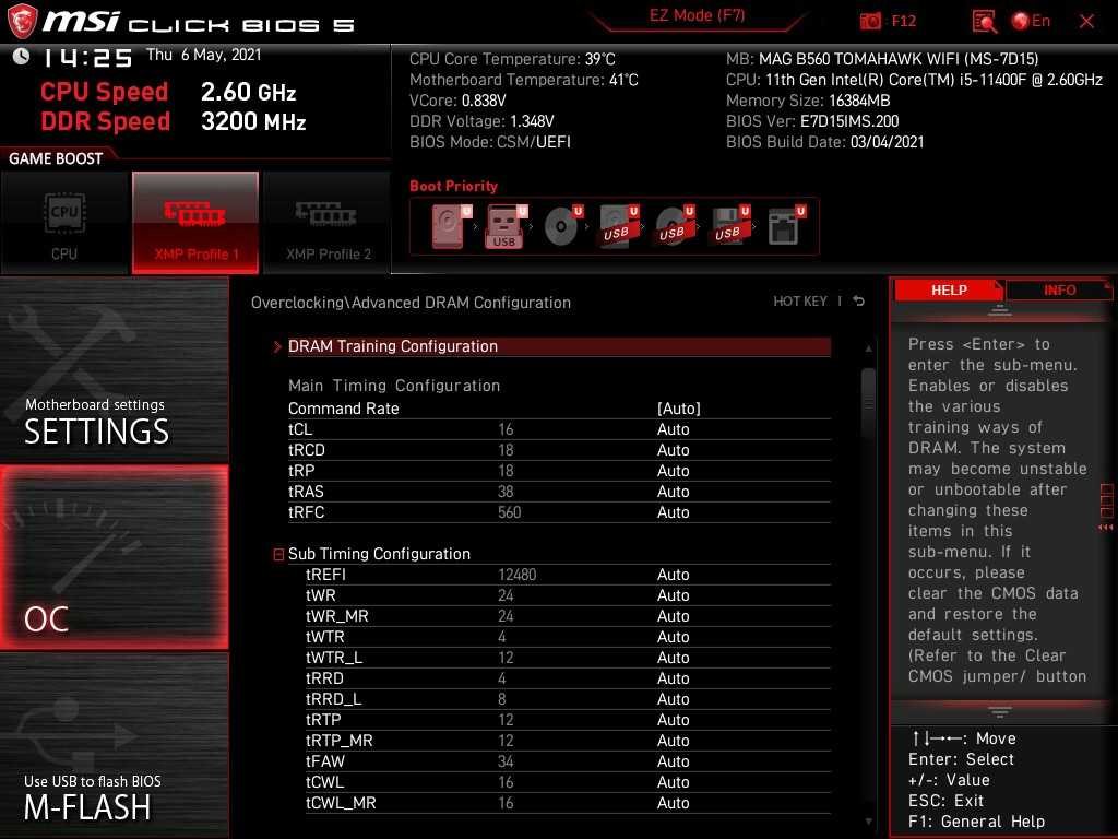 Для MSI MAG B560 TOMAHAWK WiFi используется MSI Click BIOS 5 с уже привычным для этого производителя дизайном оболочки UEFI.