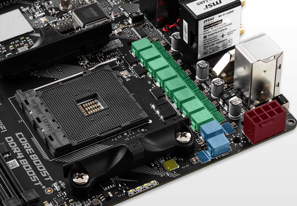 Let’s talk a little bit about MSI’s VRMs on this little board. MSI states this motherboard has an 8+2+1 Digital Power System: “Unleash and sustain maximum performance with an aggressive VRM design built with digital CPU power system. Combining exclusive Core Boost technology, MPG series motherboard is ready to sustain heavy gaming loadings.”