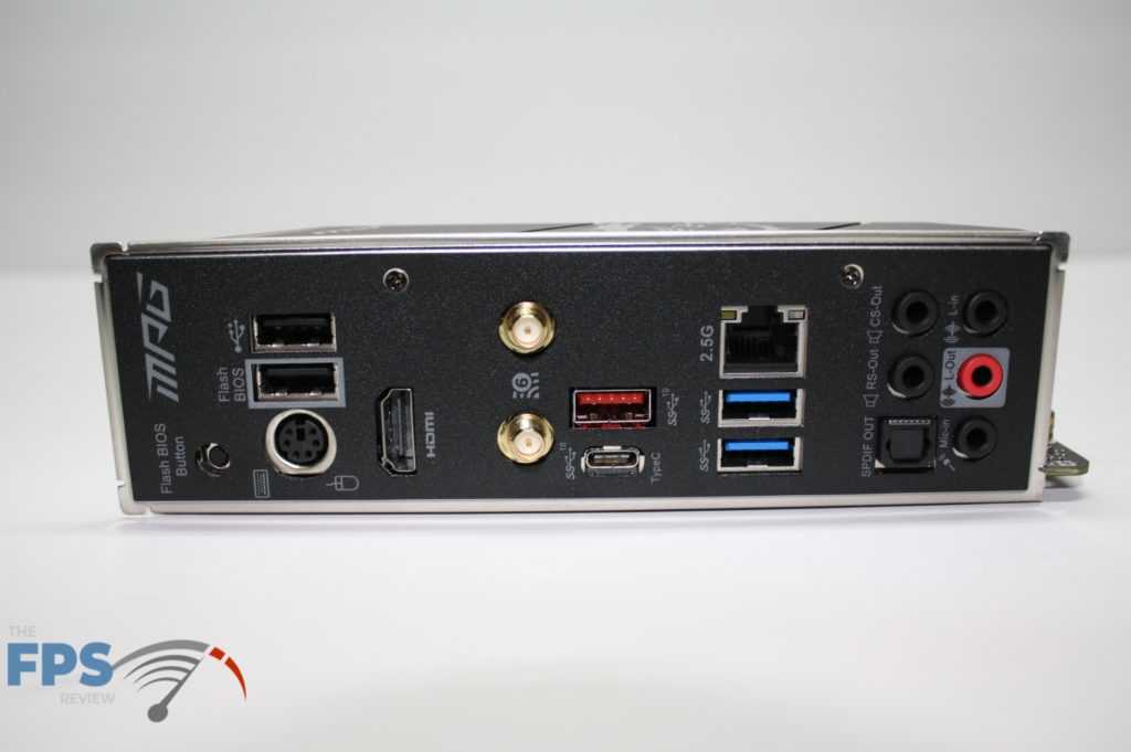 Below that, what we found kind of odd in this day and age, is a PS/2 port. One normally doesn’t see these ports any longer on most of the newer motherboards. Next to this is the HDMI 2.1 port and after that is the dual antenna ports.