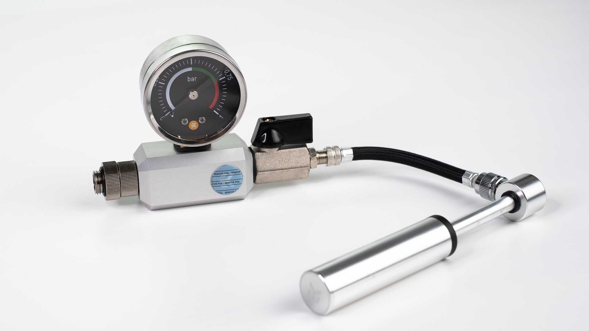 Датчик протечки представляет собой небольшой ручной насос и стрелочный индикатор давления в контуре.