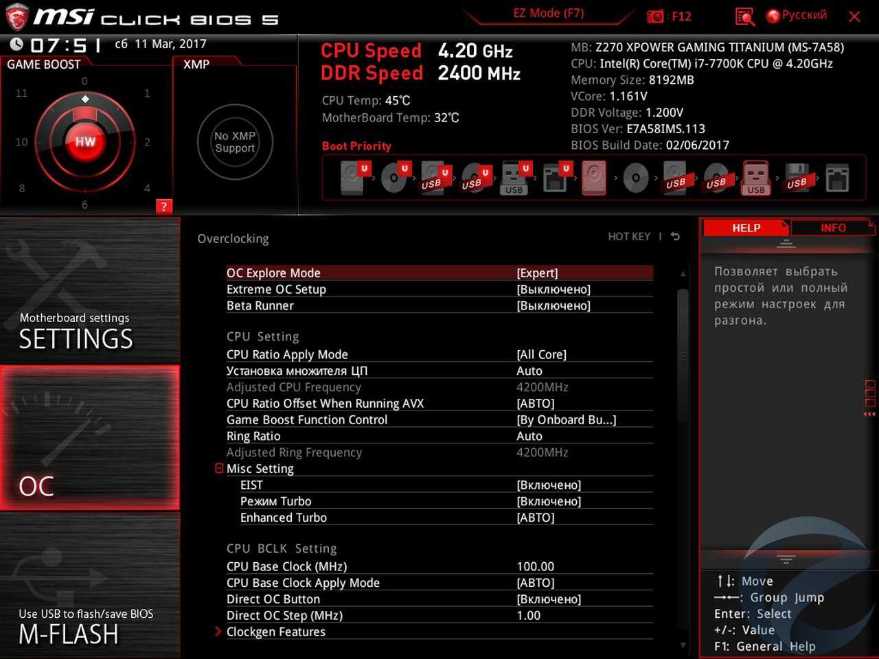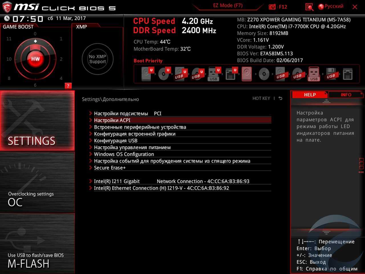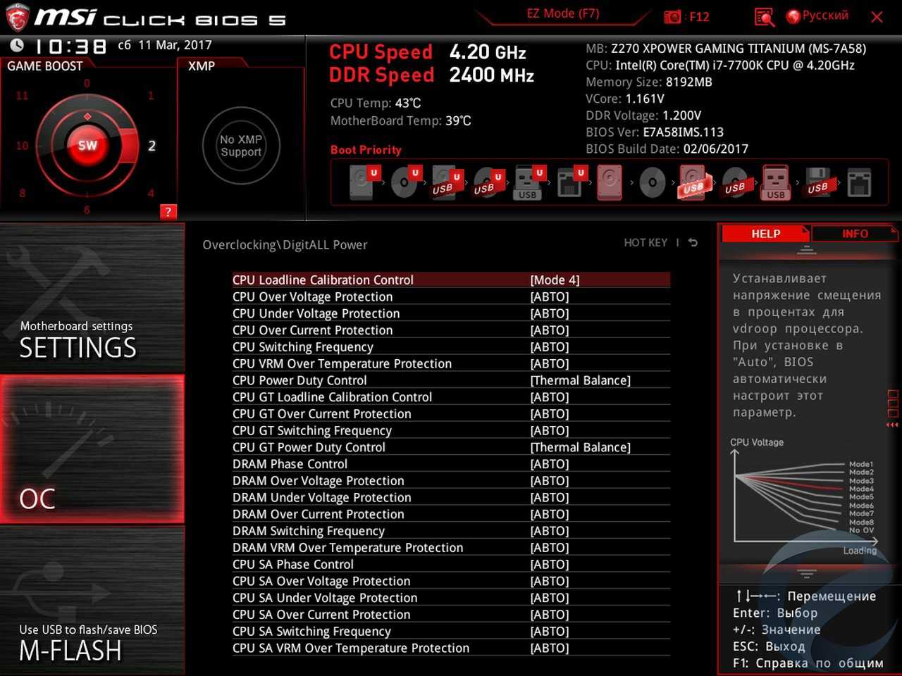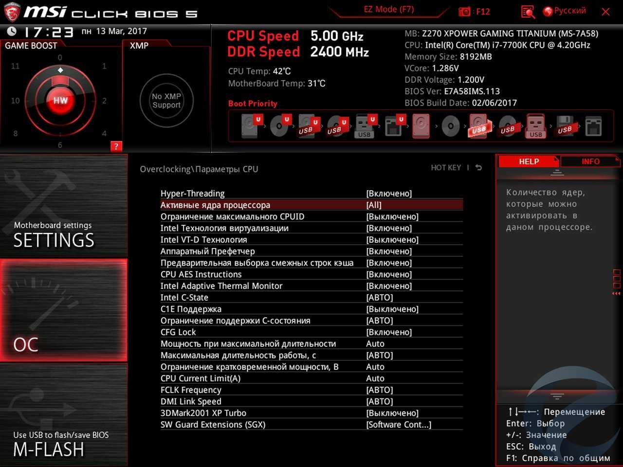 - Материнская плата: MSI Z270 XPower Gaming Titanium;