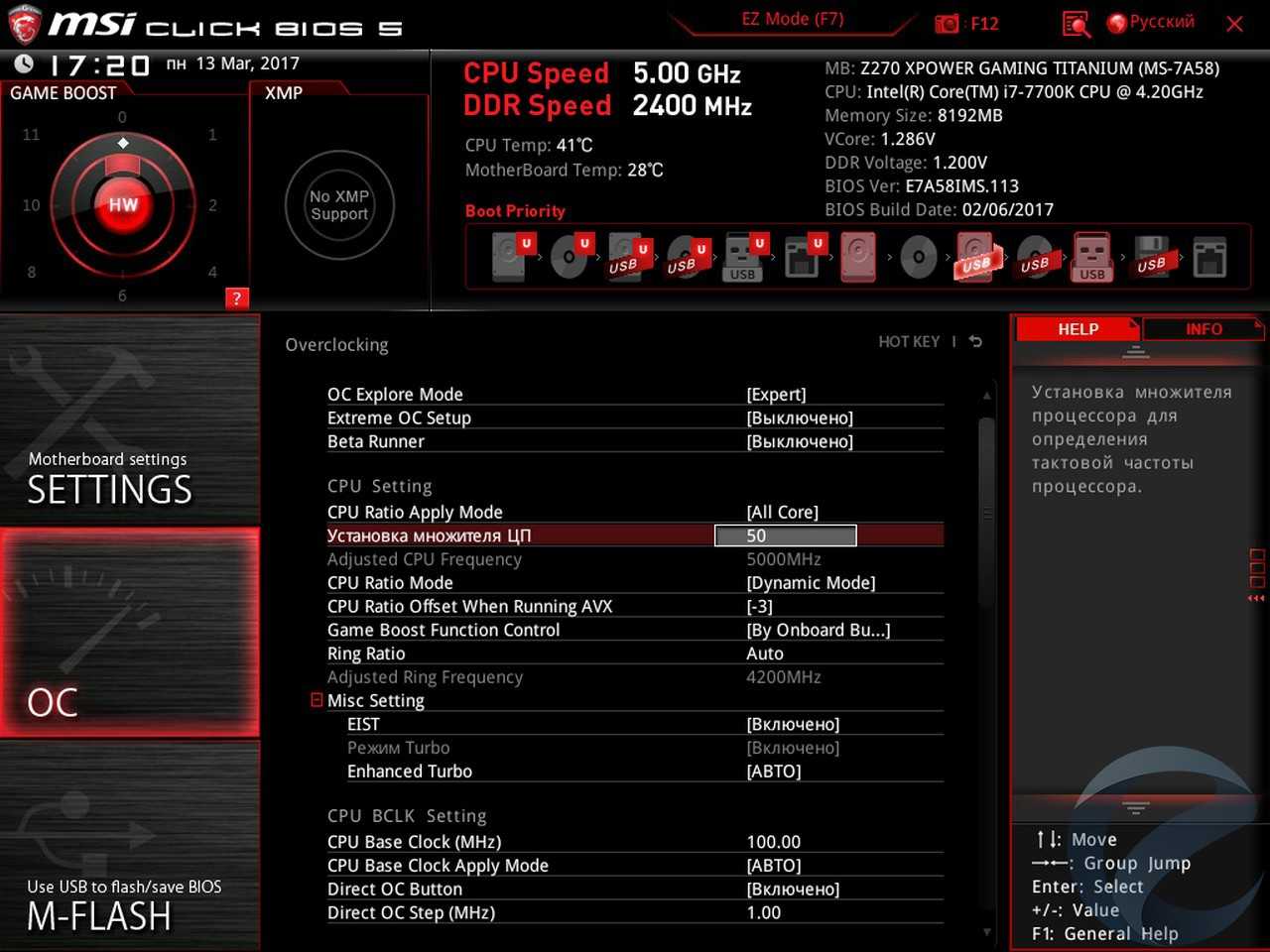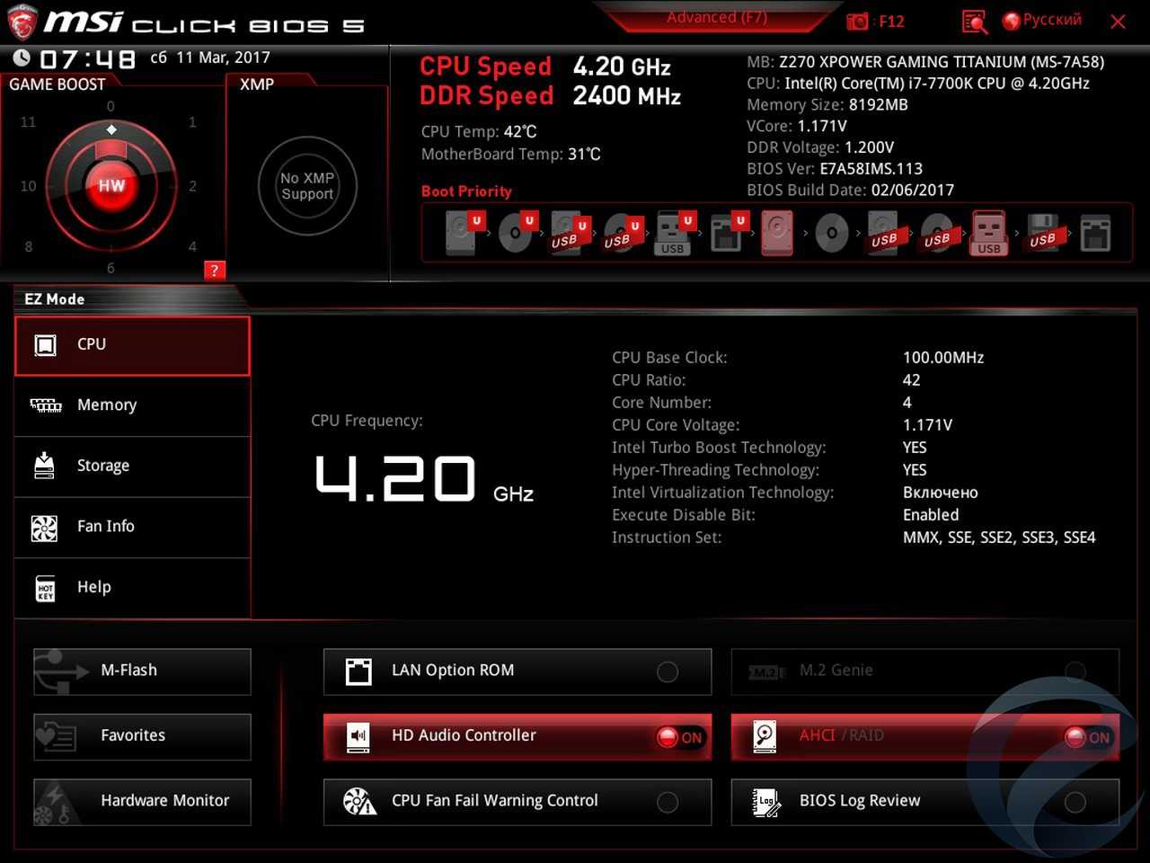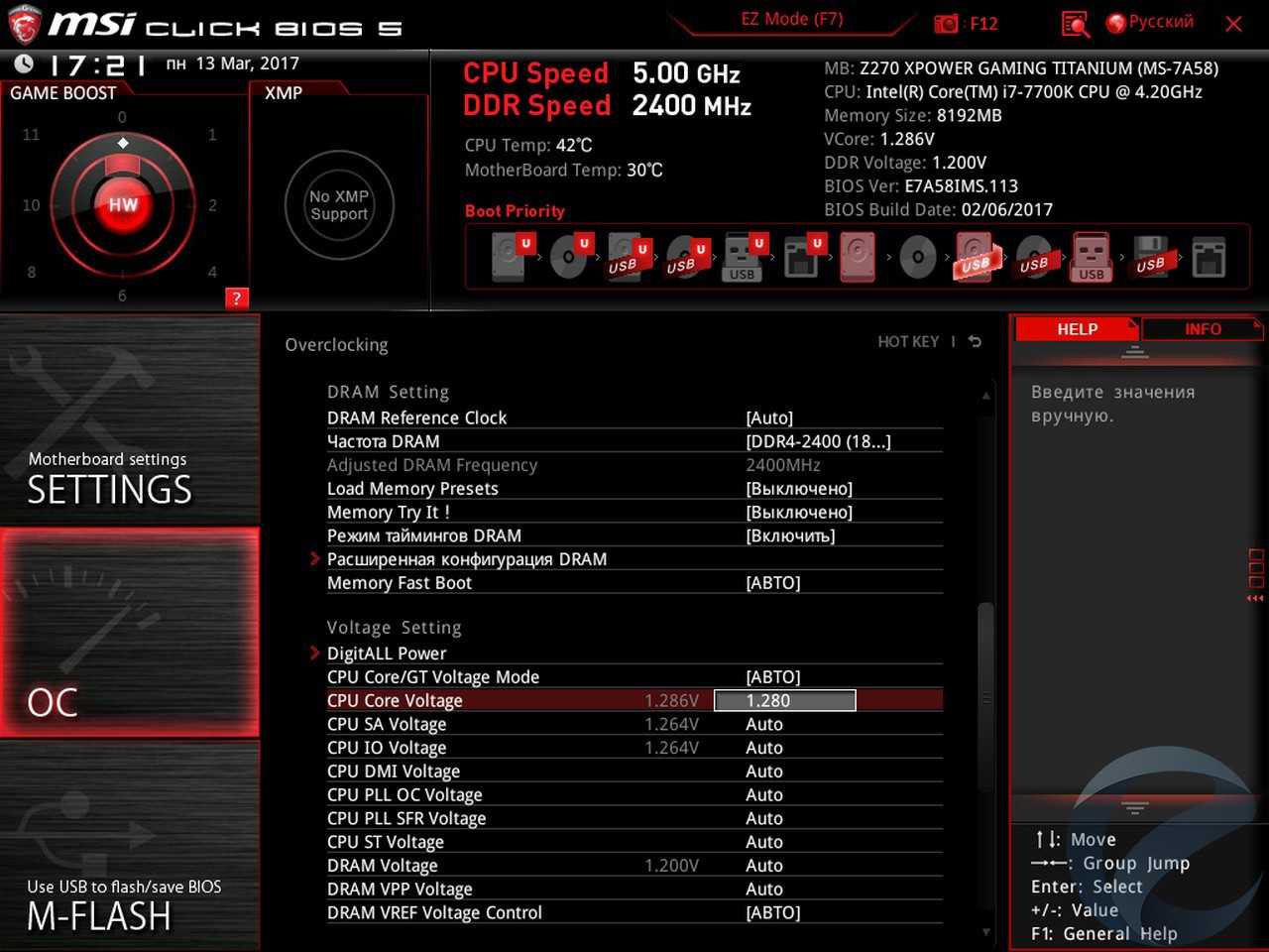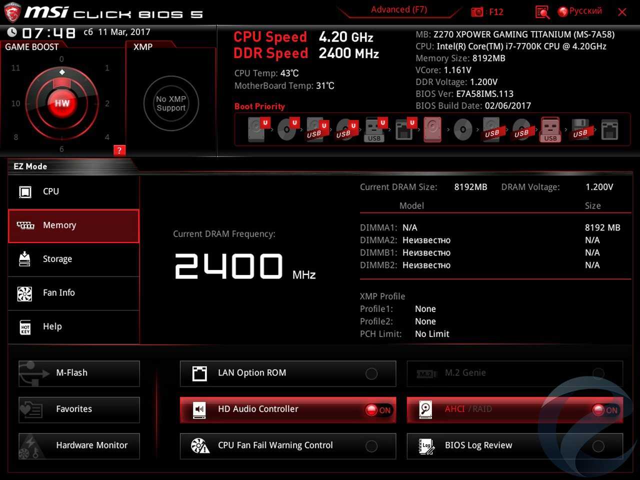 - Материнская плата: MSI Z270 XPower Gaming Titanium;
