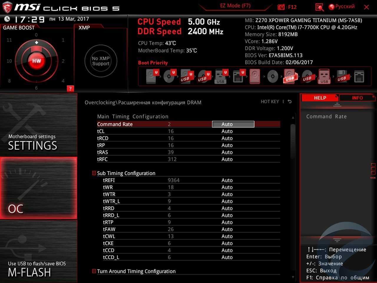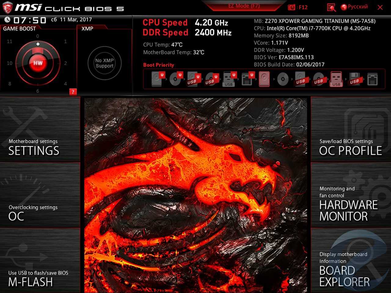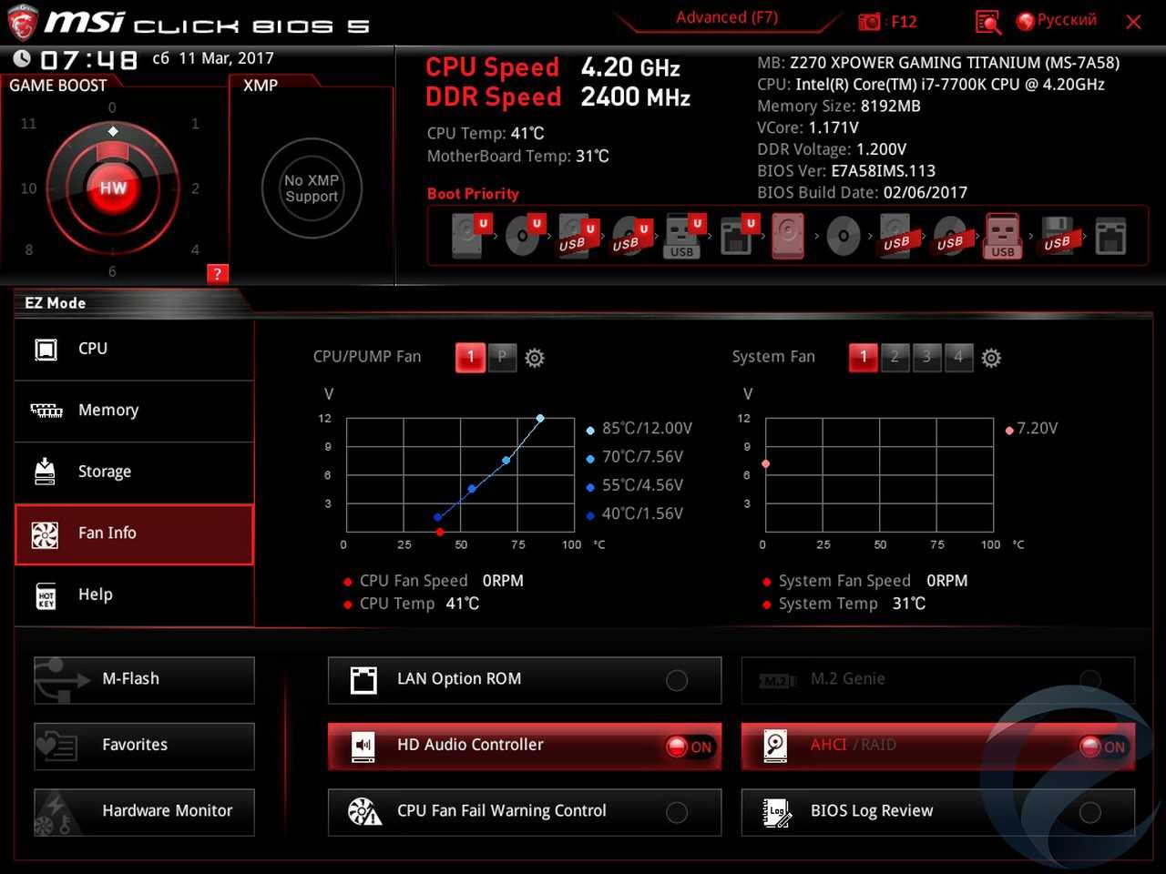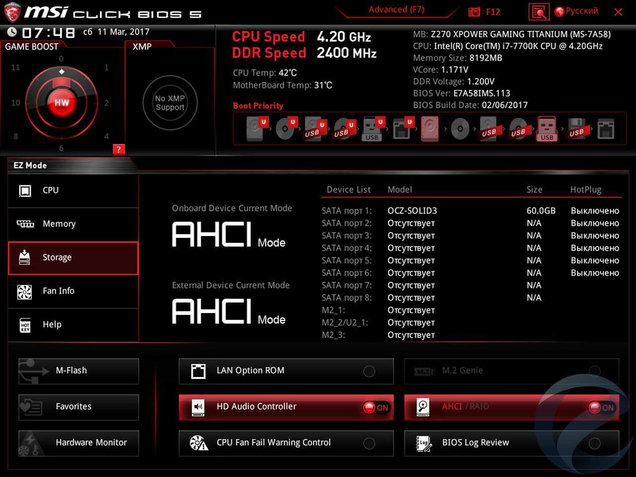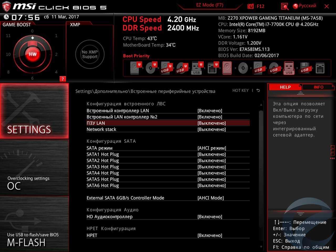 - Материнская плата: MSI Z270 XPower Gaming Titanium;