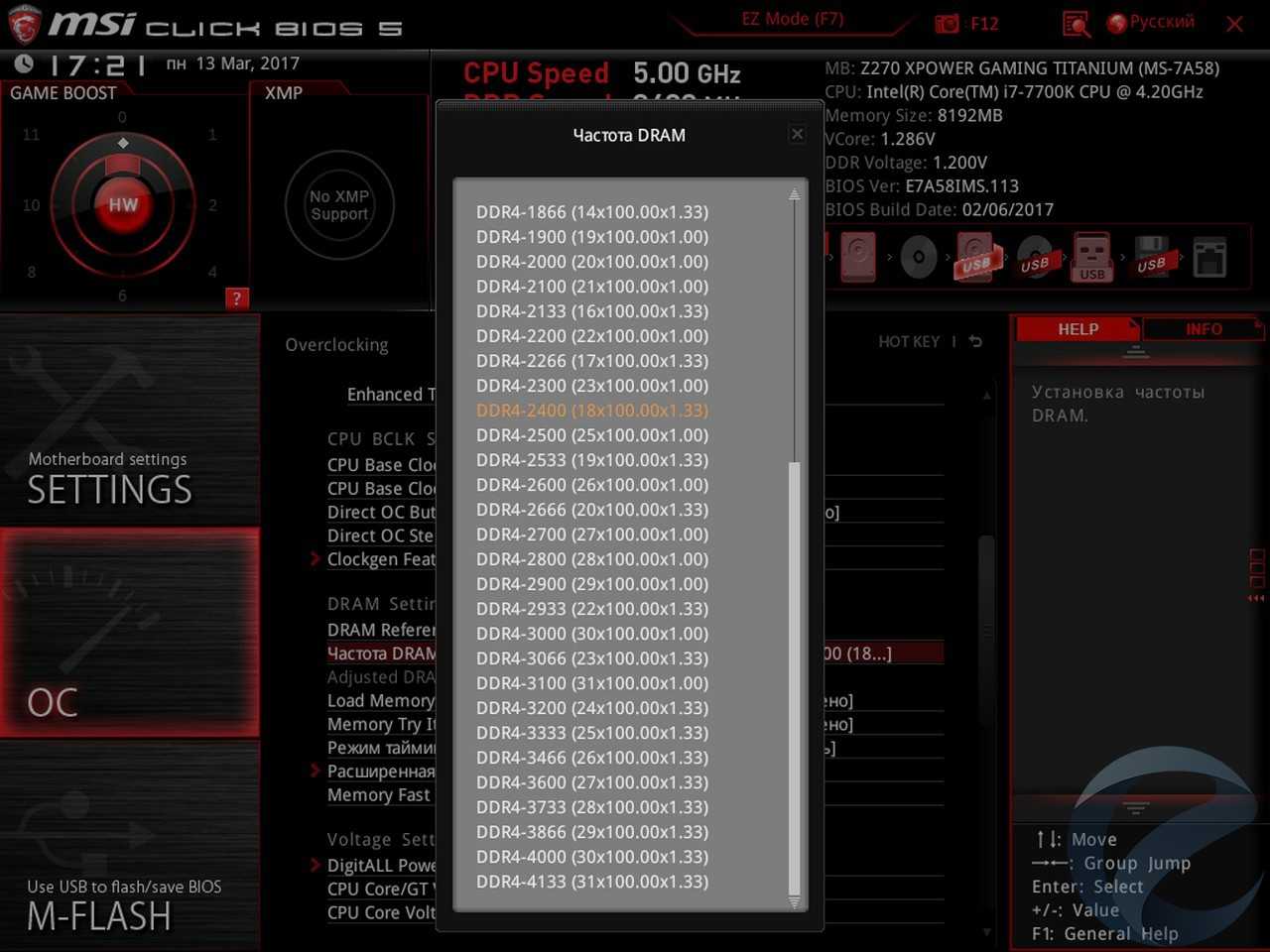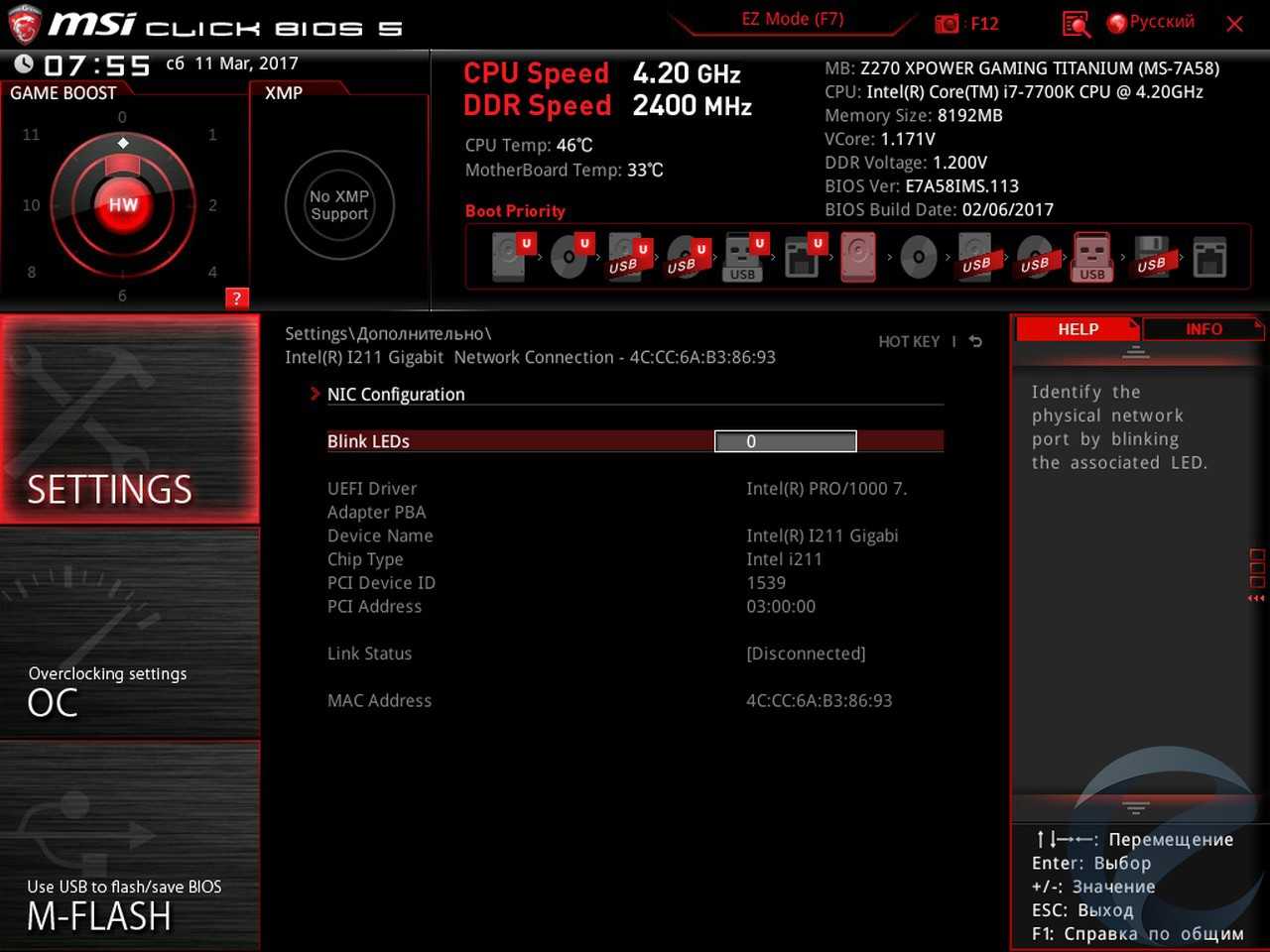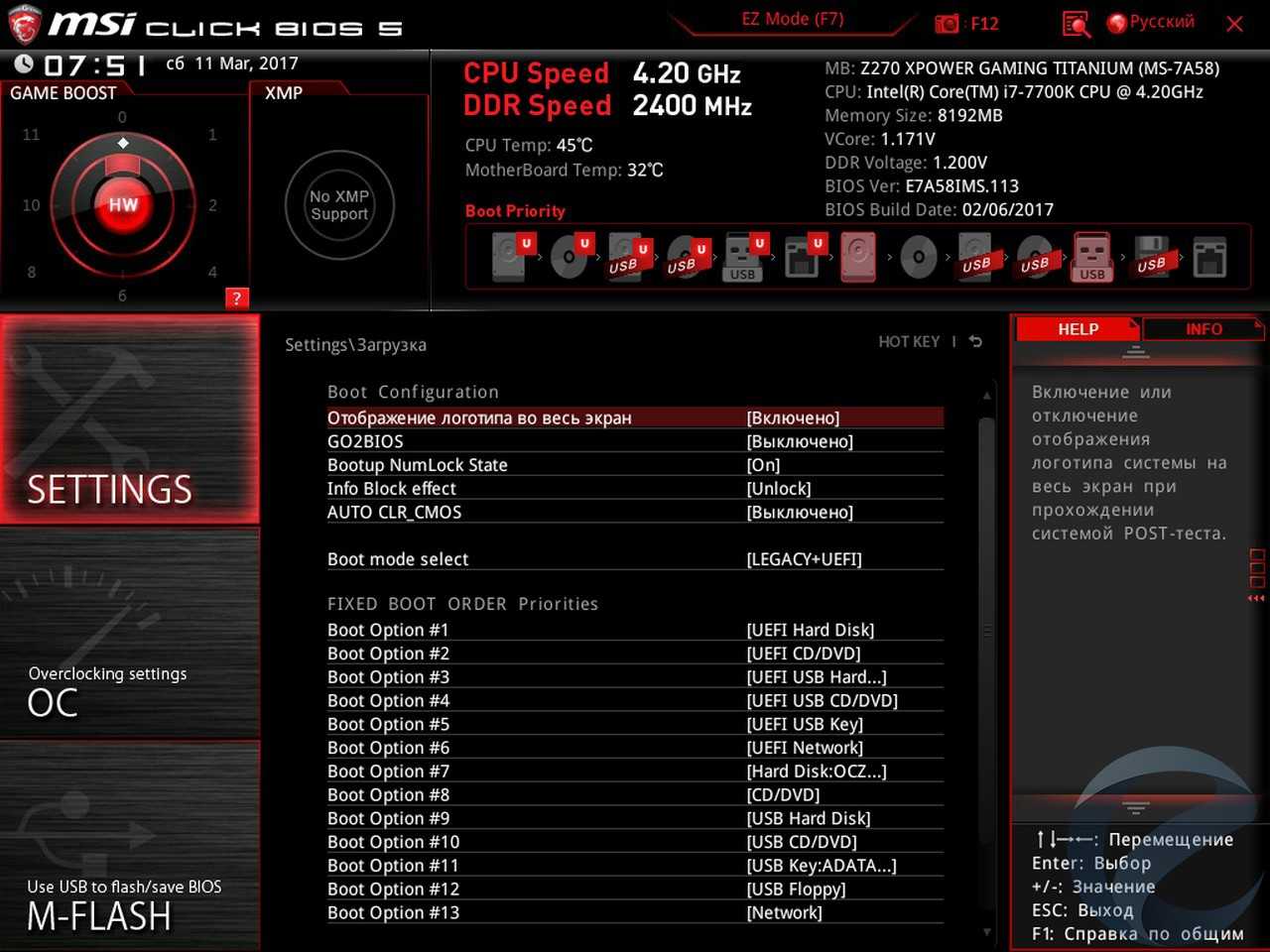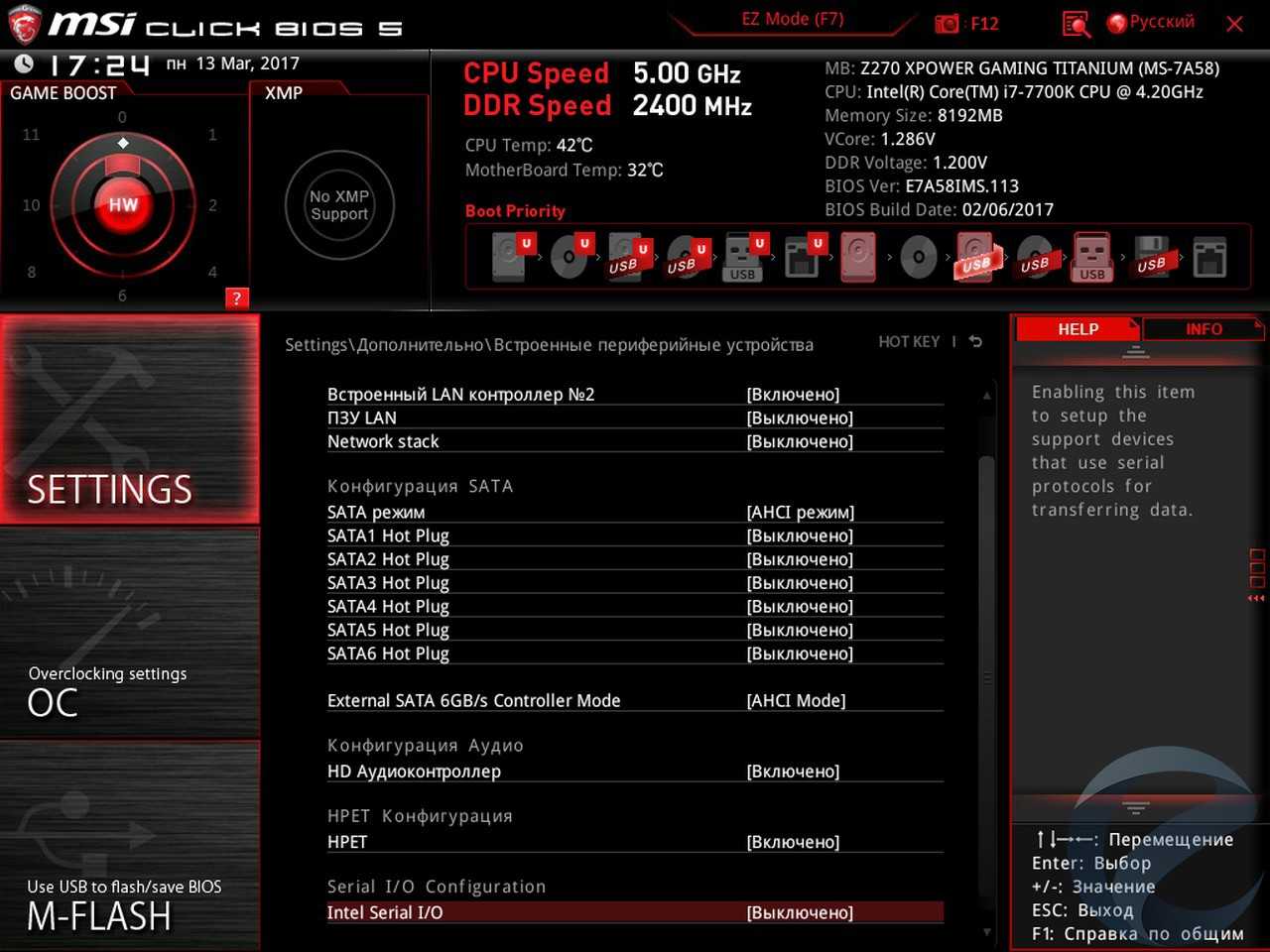 - Материнская плата: MSI Z270 XPower Gaming Titanium;