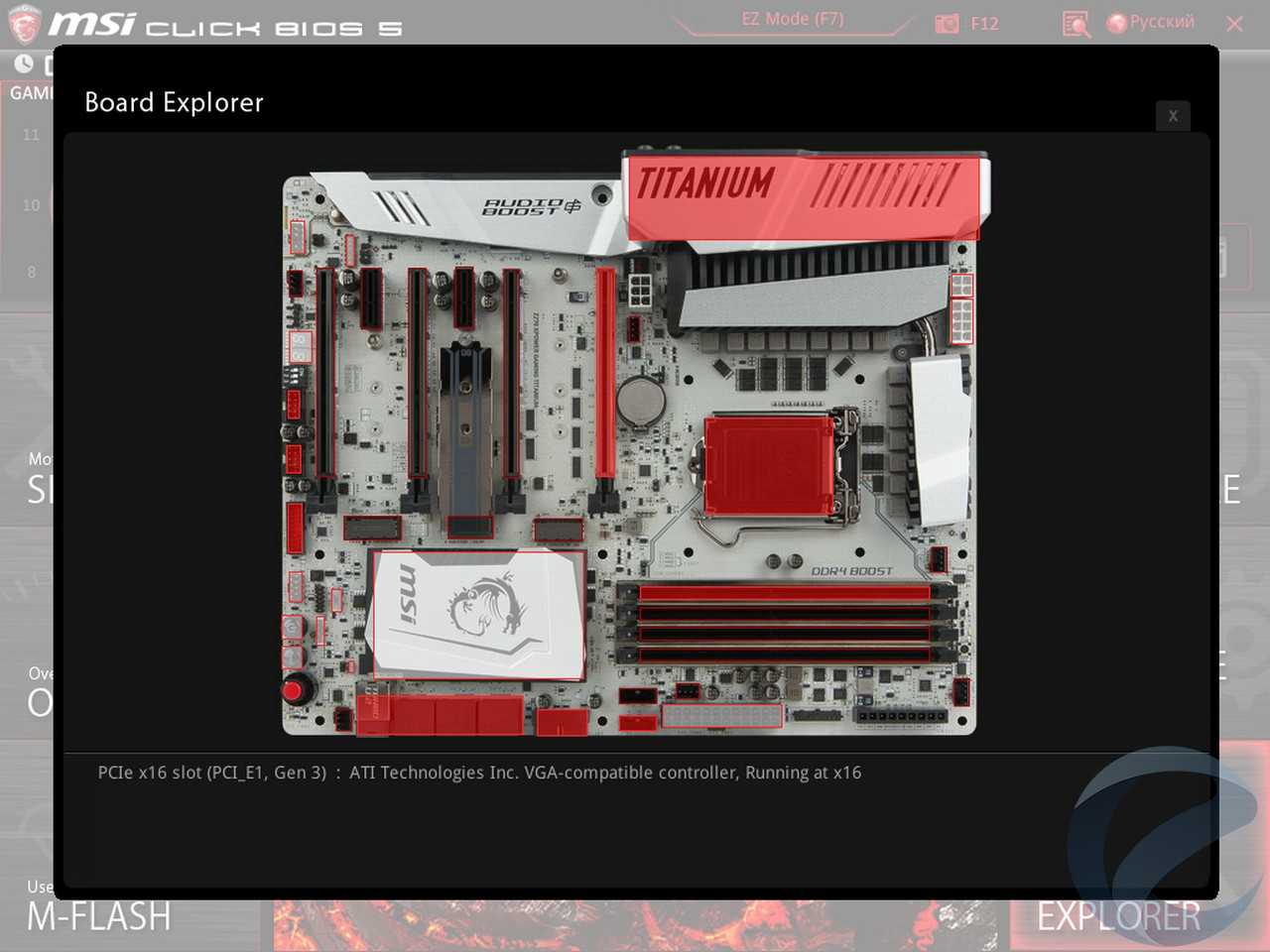 Две вкладки реализованы в виде всплывающего окна. Hardware Monitоr позволяет выполнять настройку скорости всех вентиляторов в зависимости от температурных режимов. Вкладка Board Explorer наглядно выдает информацию о задействованных разъемах и подключенных устройствах.