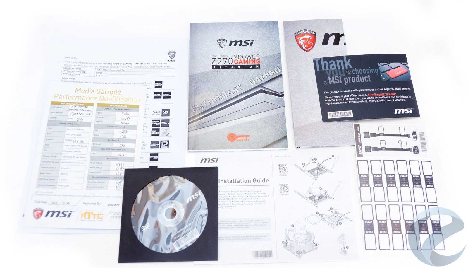 - Квалификационный лист, повествующий о заводском тестировании с перечислением тестового стенда и результатов в бенчмарках.
