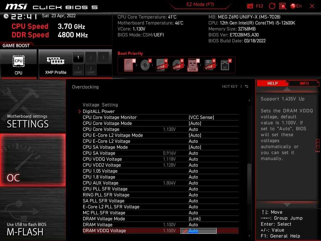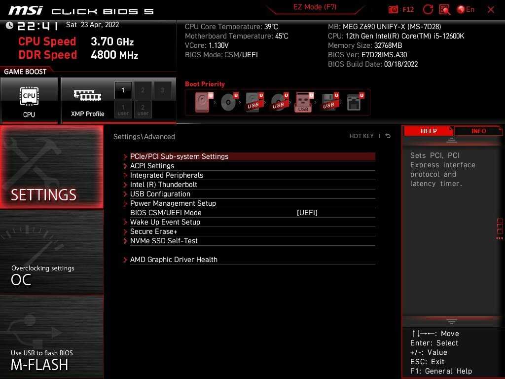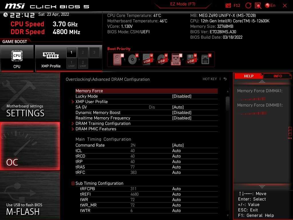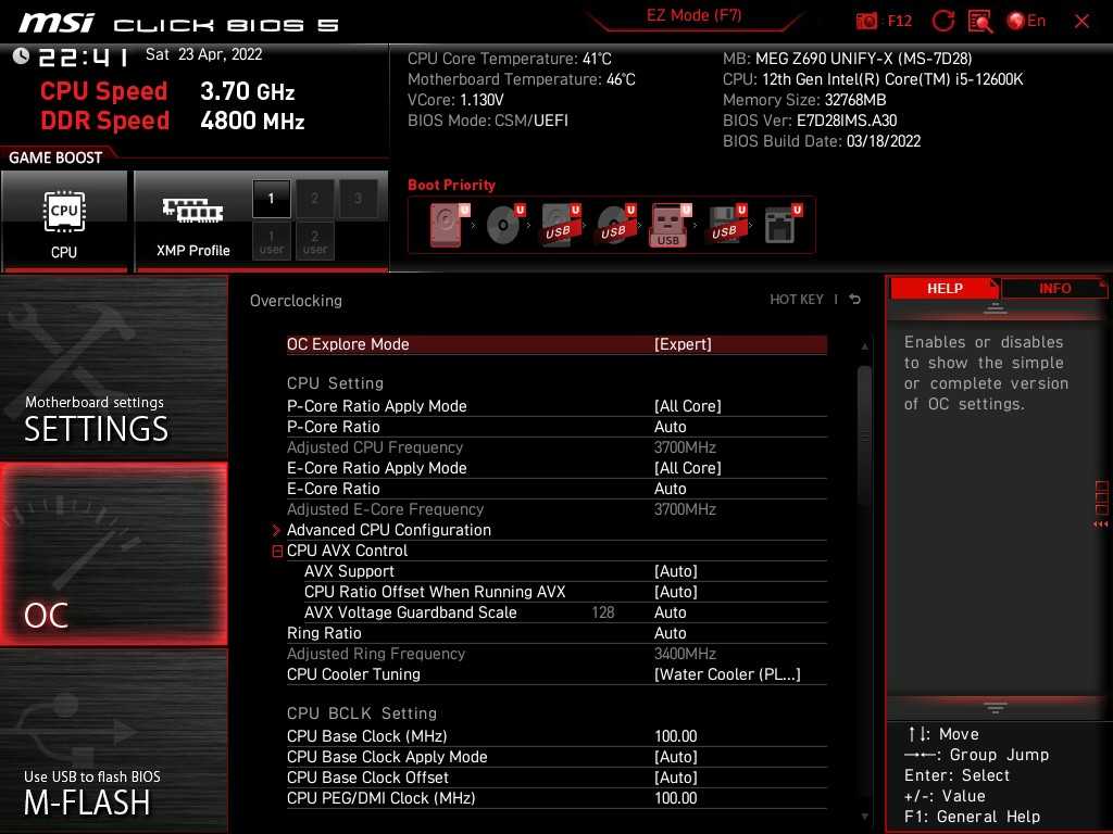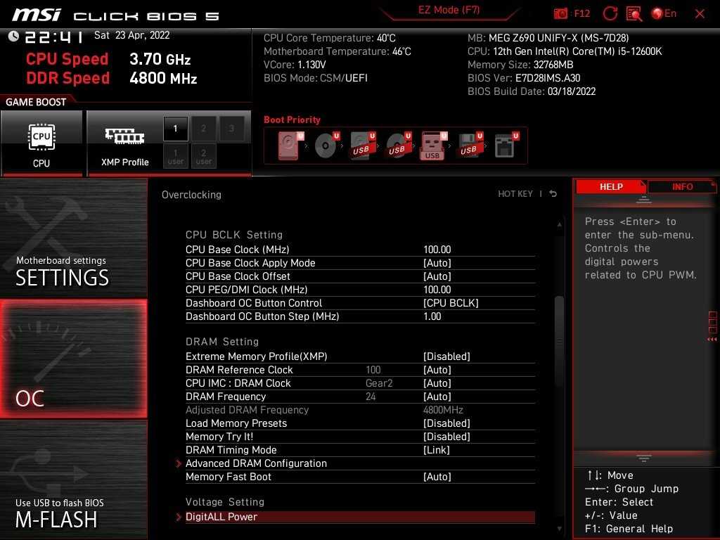 | Материнская плата | MSI MEG Z690 Unify-X (bios A.30) |