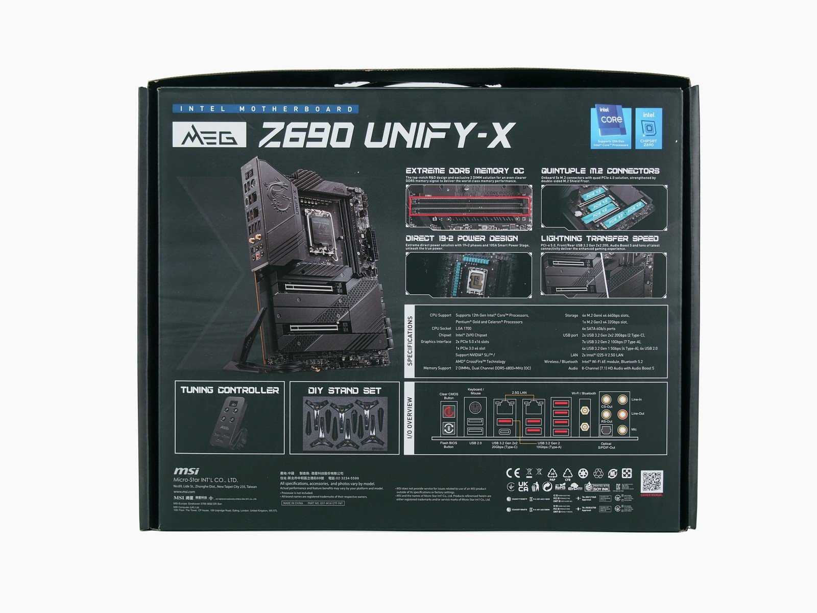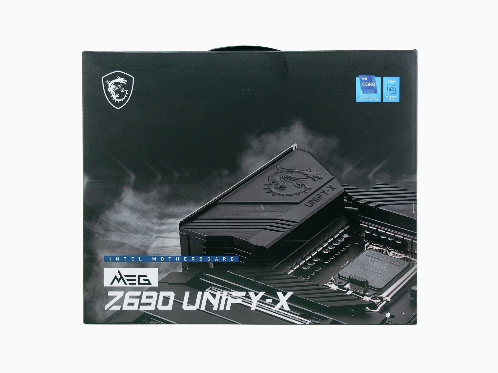 Материнская плата MEG Z690 Unify-X поставляется в большой картонной коробке, изображение на которой подчеркивает оверклокерские настроения продукта. Подробные технические характеристики и ключевые особенности платы производитель указывает на тыльной стороне упаковки.