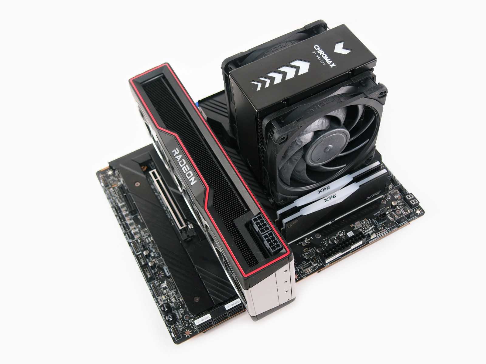 В качестве оперативной памяти использовали комплект ADATA XPG Lancer RGB DDR5-6000 2×16 Gb с чипами SK Hynix. Место графического адаптера заняла видеокарта Sapphire AMD Radeon RX 6800 XT 16 Гб.